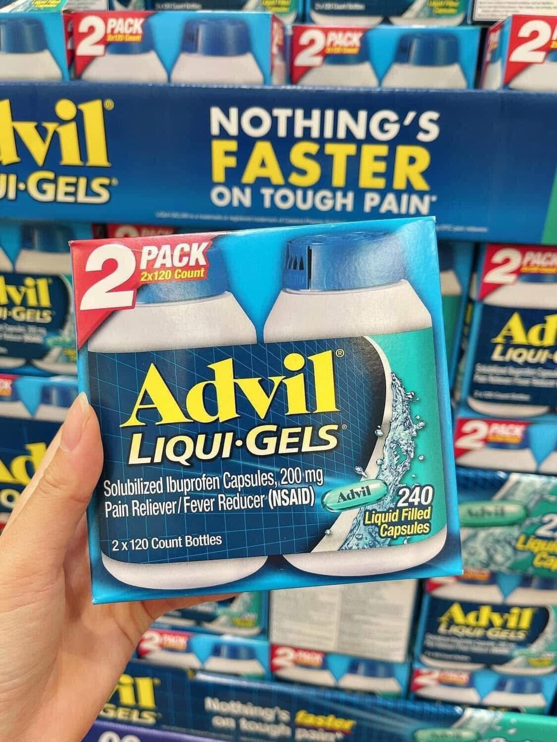 Advil Liqui-Gels được dùng theo hướng hỗ trợ giảm nhanh các cơn đau thường gặp trong sinh hoạt hằng ngày như đau đầu, đau răng, đau lưng, đau cơ, đau bụng kinh và các cơn đau nhức khi cảm lạnh. Sản phẩm cũng được dùng để giảm sốt tạm thời.