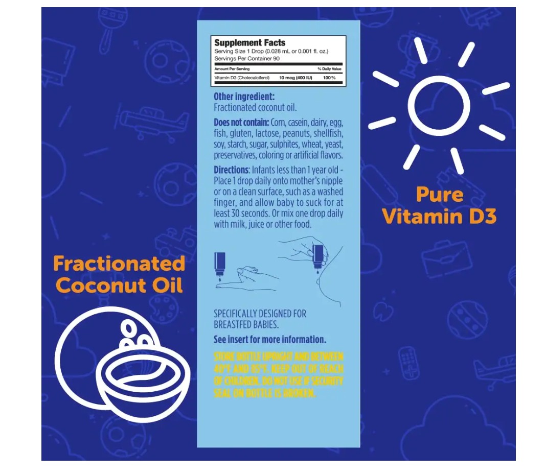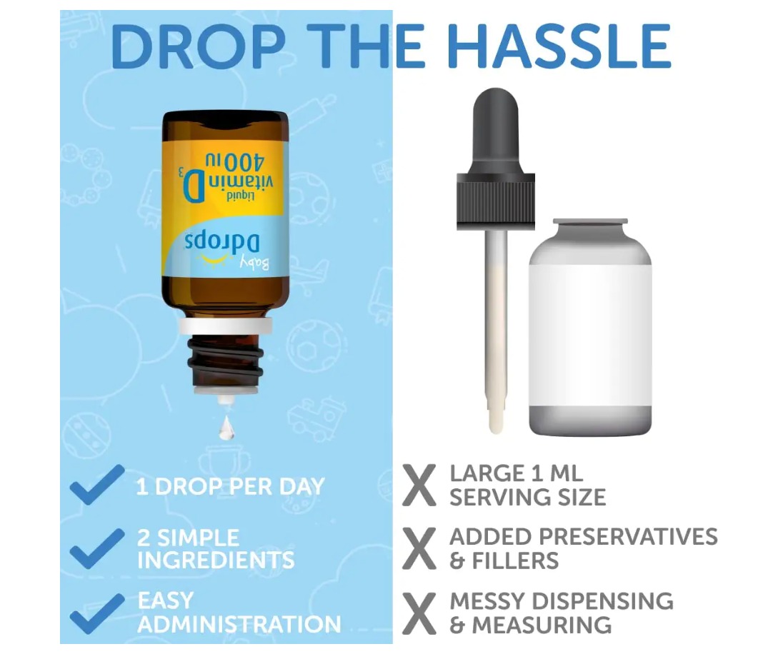 - Trong mỗi giọt có chứa 400 IU vitamin D3, mỗi ngày chỉ cần uống 1 giọt (cả bé sơ sinh và người lớn).