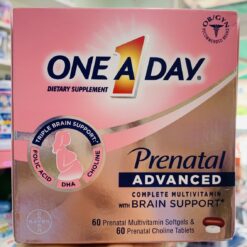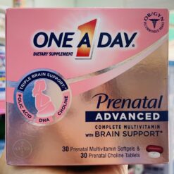 Vitamin cho bà bầu One A Day Prenatal Advanced bao gồm toàn bộ các vitamin hoàn hảo dành cho phụ nữ đang mang thai cũng như các chất dinh dưỡng cần thiết và quan trọng cho sự phát triển thể chất, trí não: Acid Folic, DHA, Choline và Sắt. Tất cả các chất đó có trong 1 hộp Prenatal One a Day với 30 Prenatal Multivitamin Softgels và 30 Prenatal Choline Tablets vô cùng tiện lợi.