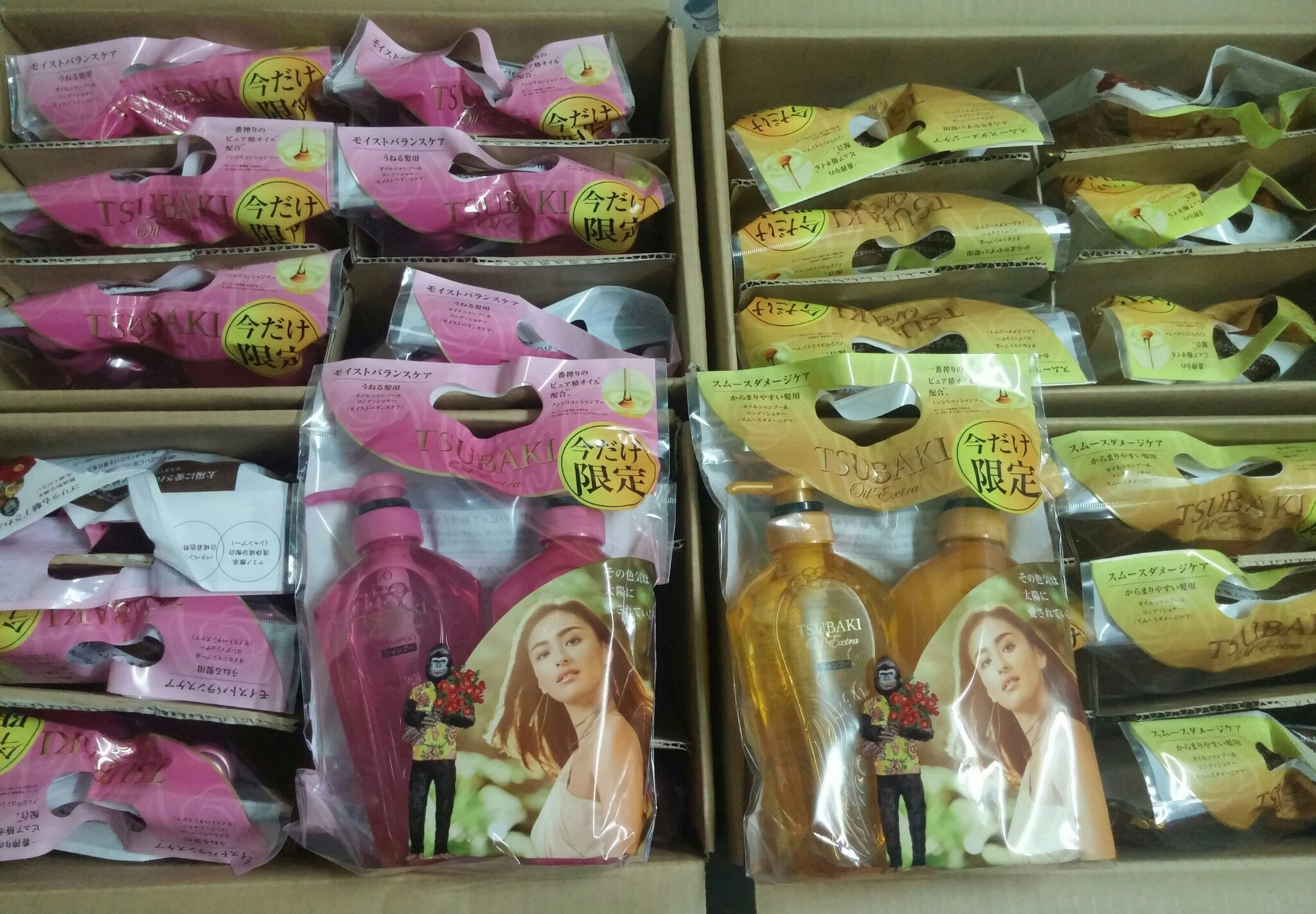 Cặp dầu gội Tsubaki mẫu mới có dung tích 450ml, với các thành phần chính chiết xuất từ hoa trà đỏ với vẻ đẹp thanh nhã và hương thơm ngọt mịn. Chiết xuất này rất giàu axit oleic và axit linoleic, là những thành phần được hấp thụ dễ dàng bởi da và tóc.