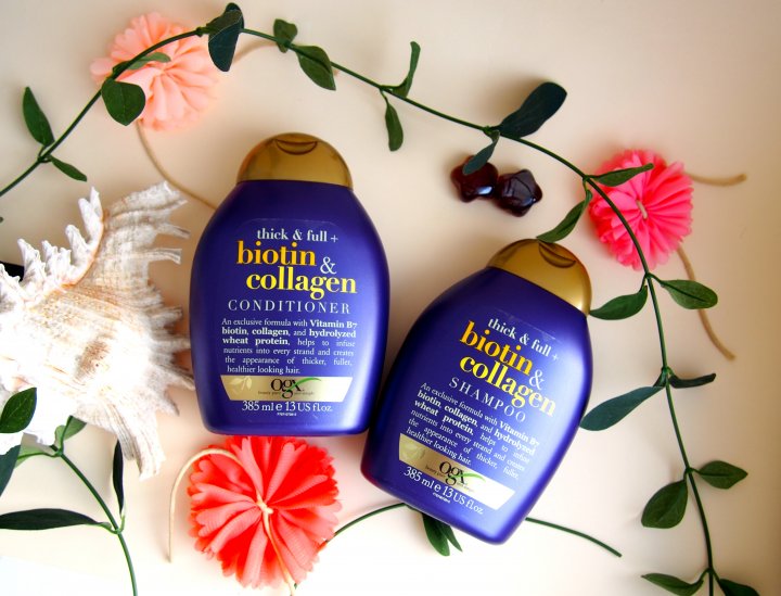 - Bộ dầu gội xả OGX Thick & Full Biotin Collagen có tác dụng nổi bật là làm dài tóc, dầy tóc, mượt mà hơn, bồng bềnh hơn và tràn đầy sức sống.