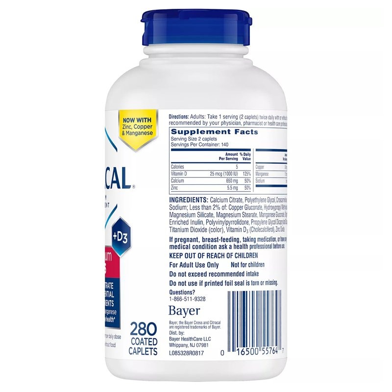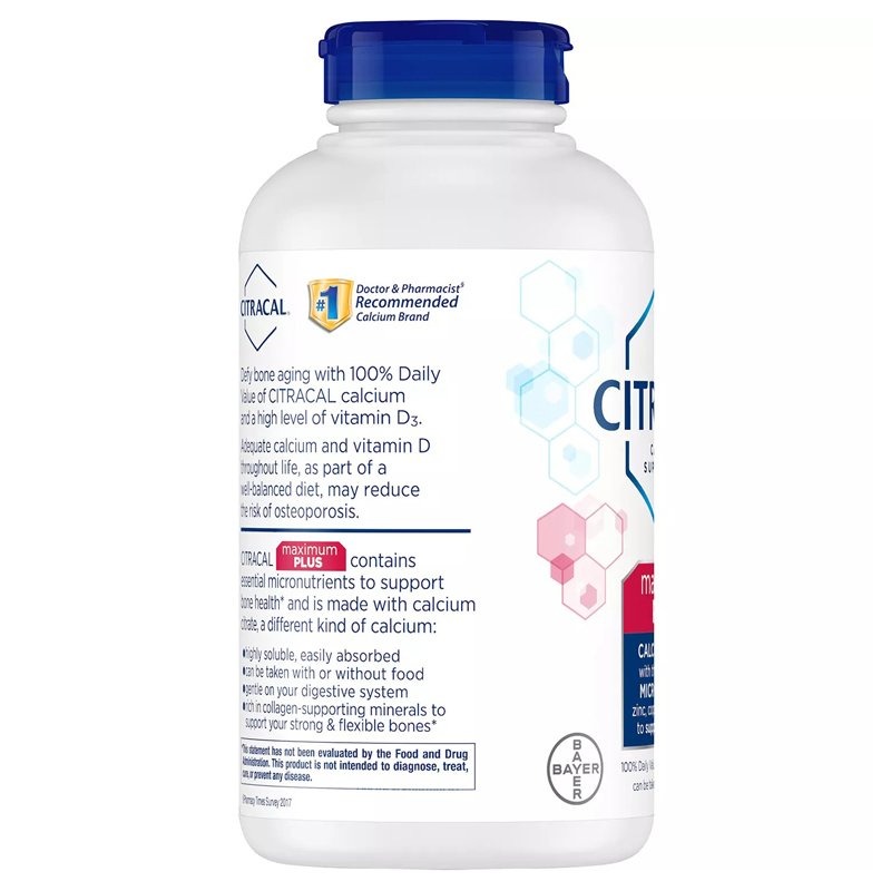Bayer Citracal Maximum Plus Calcium Citrate + D3 là giải pháp bổ sung canxi khoa học – an toàn – dễ hấp thu, phù hợp cho người trưởng thành muốn chăm sóc sức khỏe xương khớp theo hướng phòng ngừa sớm.