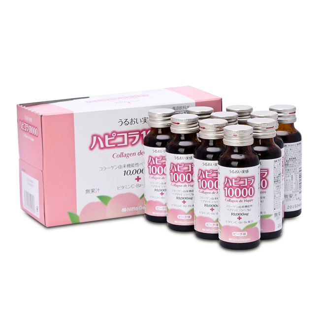 - Nước uống bổ sung Collagen của Nhật Bản Collagen de Happy chứa hàm lượng collagen cao với 10.000 ml / lọ. Vì vậy mỗi ngày chỉ cần dùng 1 chai nhỏ này đã đủ nhu cầu cơ thể mà không phải uống nhiều lần.