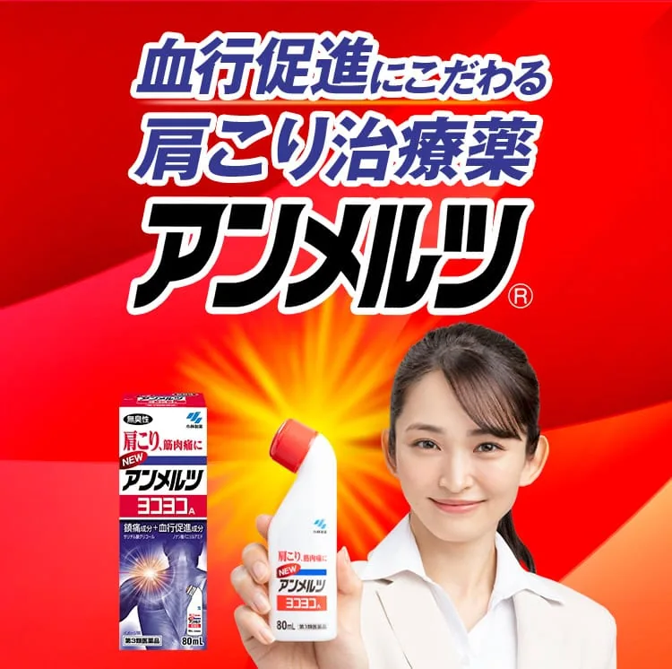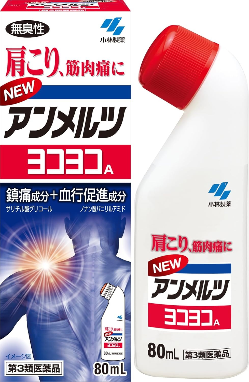 Kobayashi New Ammeltz YOKOYOKO A là thuốc xoa ngoài da OTC của Nhật Bản, dùng cho các tình trạng như vai gáy cứng/mỏi, đau cơ, mệt cơ, đau lưng, bầm tím, bong gân và đau khớp. Sản phẩm có thiết kế chai lăn đặc trưng của dòng YOKOYOKO, giúp thoa trực tiếp lên vùng cần dùng thuận tiện hơn, kể cả những vị trí khó với như lưng hoặc vai. Công thức kết hợp glycol salicylate, l-menthol, benzyl nicotinate, nonivamide và các thành phần hỗ trợ khác, mang lại cảm giác ấm nóng và hỗ trợ giảm khó chịu tại chỗ.