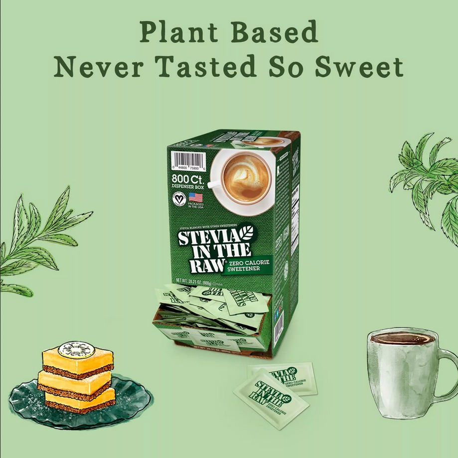 - Chiết xuất từ lá cỏ ngọt Stevia – loài thực vật có nguồn gốc từ Nam Mỹ, đã được sử dụng như một chất tạo ngọt tự nhiên suốt hơn 400 năm. Lá Stevia được ngâm trong nước nóng để chiết xuất vị ngọt, sau đó trải qua quá trình lọc và tinh chế để tạo thành chất tạo ngọt Stevia In The Raw.