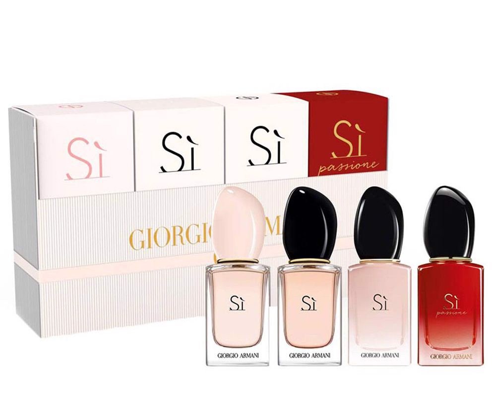 Đã lỡ mang môt tình yêu dành cho dòng nước hoa Sì thì mọi cô gái đều muốn chiếm hữu trọn bộ sưu tập mang tên Sì. Chính vì thế mà Giorgio armani đã dành riêng bộ quà tặng vô cùng đáng yêu. Bộ quà tặng bao gồm 4 mùi hương siêu đẳng của dòng nước hoa Sì. Với 4 phong cách khác nhau, cô nàng Sì sẽ trở nên bí ẩn hơn trong từng mùi hương nhà Sì.