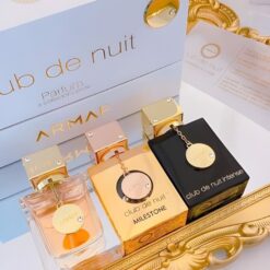 GiftSet Nước Hoa Armaf Club De Nuit Parfum Women 3 X 30ML là phiên bản giới hạn gồm 3 mùi hương nước hoa nữ bán chạy nhất của nhà Armaf : Club de nuit Woman, Club de nuit Milestone, Club de nuit intense woman. Set Nước Hoa Club De Nuit là trải nghiệp tuyệt vời cho nàng với 3 mùi hương khác nhau giúp nàng thay đổi mùi hương mỗi ngày.