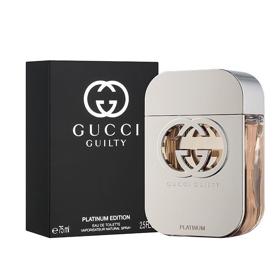 - Vẫn giữ được nét đặc trưng từ hương hoa là vốn đặc trưng của guilty, Lớp hương đầu Platinum mang lại cảm giác tươi mới đầy sức sống của hương hoa phong lữ và vị cay nhẹ đặc trưng của hồng tiêu. Các nốt hương tiếp theo dần chuyển sang sự ngọt ngào đầy tinh tế của quả đào và tử đing hương. Khi mùi hương dần khô, nốt hương tông gỗ ẩm của hổ phách xuất hiện kèm theo là hương gỗ từ cây hoắc hương mang đến vẻ đẹp sang trọng cho chính người sử dung.