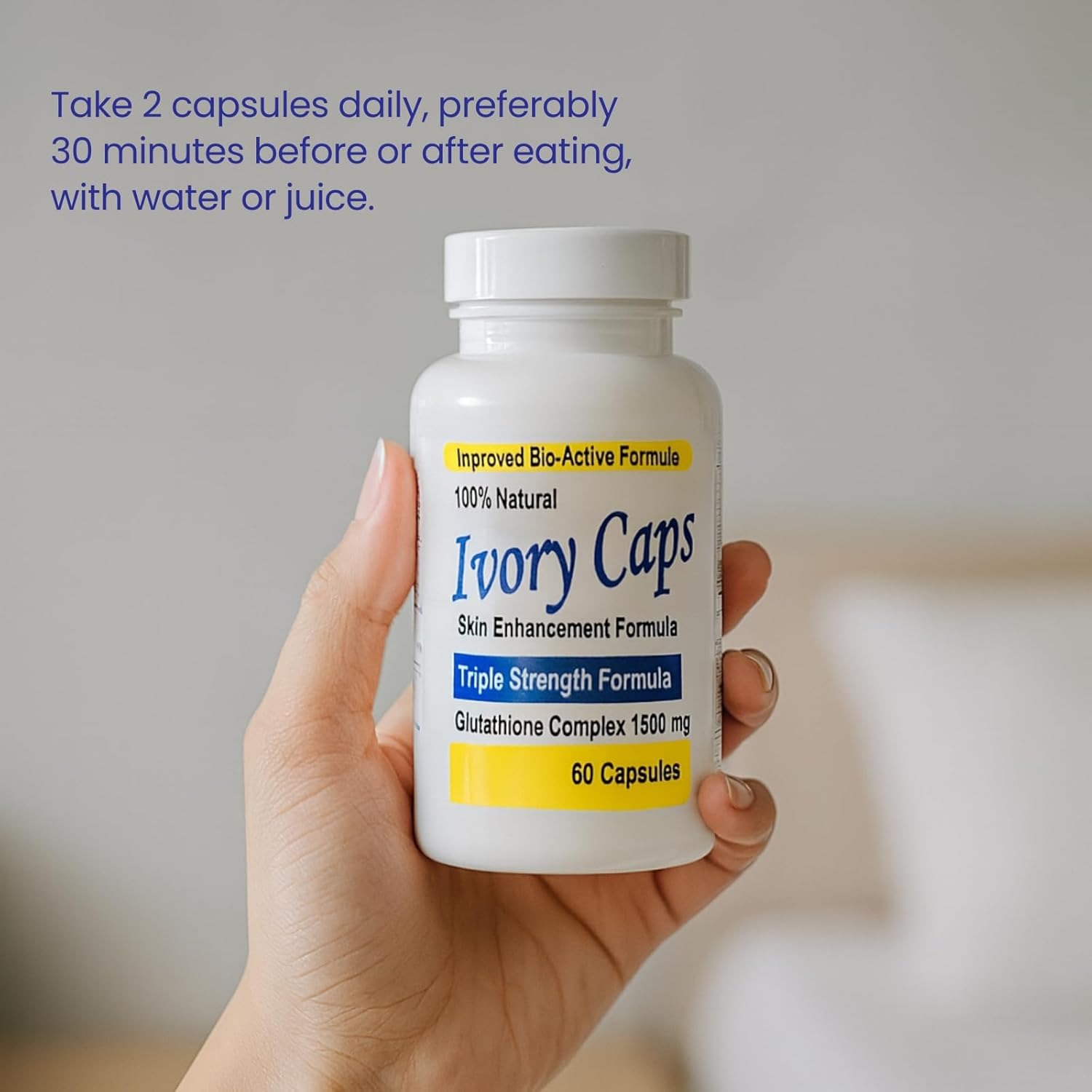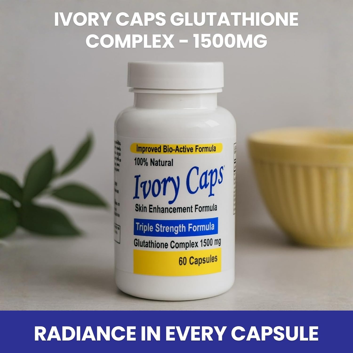 Nếu bạn đang tìm một dòng viên uống glutathione dạng viên nang để đưa vào routine chăm sóc da hằng ngày, thì Ivory Caps Skin Enhancement Formula là sản phẩm khá dễ gặp. Theo trang chính thức của hãng, đây là bản 1 chai 60 viên nang, dùng công thức Skin Essentials™ Glutathione Complex với hàm lượng 1500mg trong mỗi 2 viên.