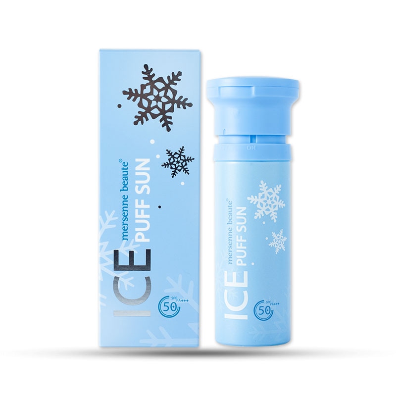 - Kem chống nắng Ice Puff Sun Mersenne Beaute pha lê tuyết có khả năng làm lạnh da ngay lập tức (xuống dưới 5 độ C). Giảm ngay các vết sưng đỏ hoặc các vết thâm, độ che phủ lên đến 80% giúp bề mặt da bóng sáng và căng mịn hơn, che phủ các vết sần.