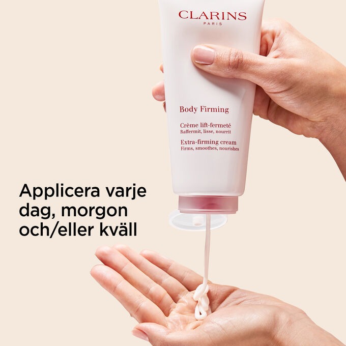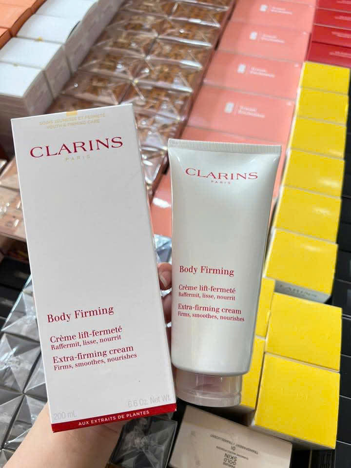 Kem làm săn chắc toàn thân Clarins Extra-Firming Body Cream chứa các chiết xuất hoàn toàn thiên nhiên như cỏ xạ hương, bơ hạt mỡ, rau má, bocoa… giúp cải thiện độ đàn hồi tự nhiên của da, cho làn da vẻ căng bóng và mượt mịn, đồng thời khôi phục những đường nét trẻ trung cho cơ thể. Có thể sử dụng sản phẩm cho làn da chùng nhão do tuổi tác, trọng lượng cơ thể tăng giảm đột ngột, phụ nữ sau sinh.