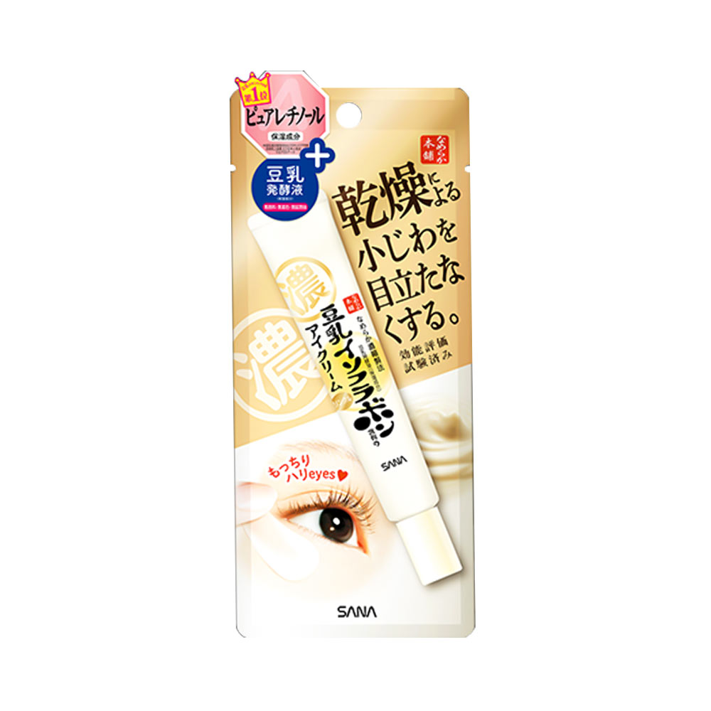 Kem dưỡng mắt Sana Nameraka Wrinkle Eye Cream Nhật Bản được chiết xuất từ đậu nành cùng dẫn xuất retinol giúp dưỡng ẩm sâu, đánh tan bọng mắt, chống thâm mắt và làm mờ hiệu quả những nếp nhăn gây ra bởi sự khô ráp.