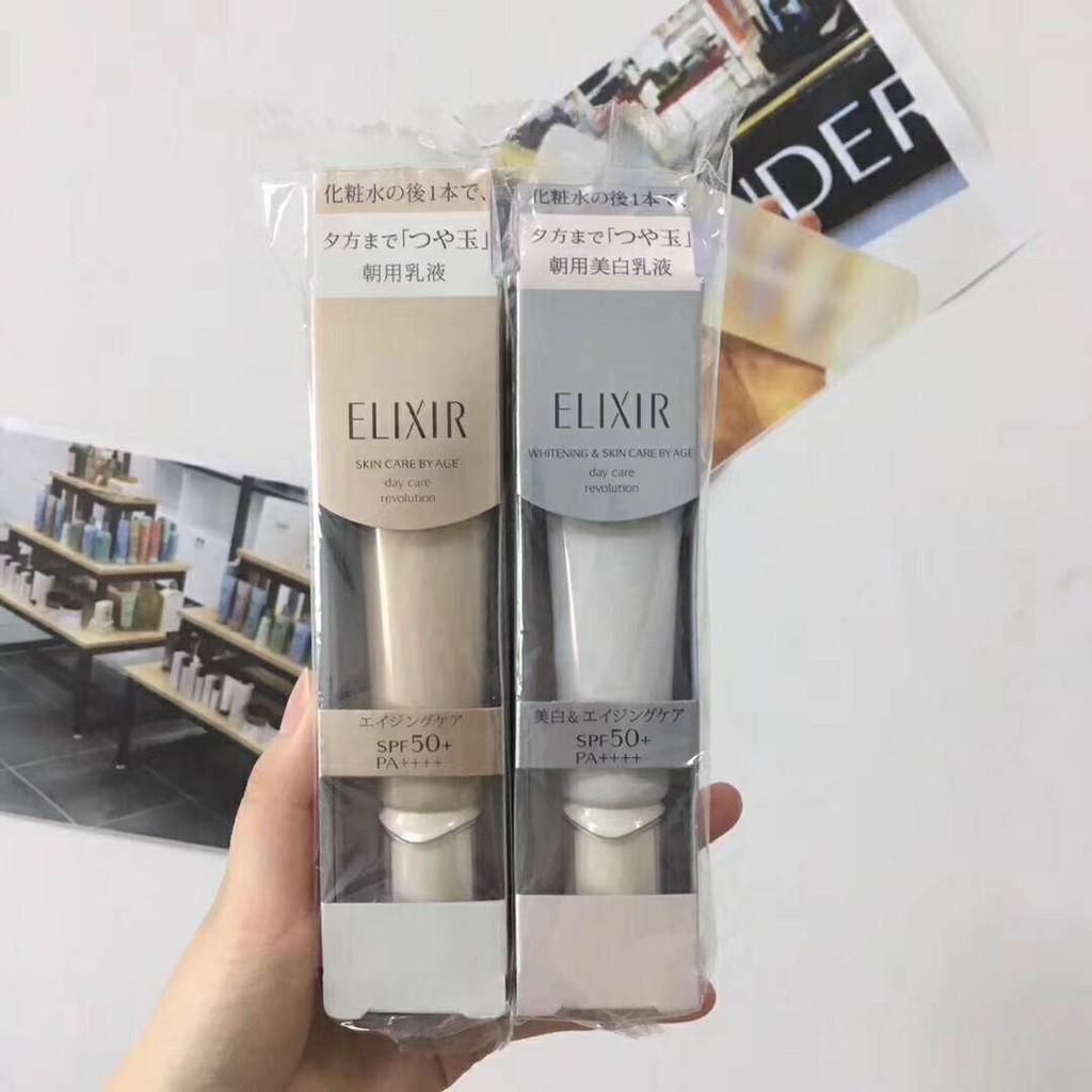 - Shiseido Elixir Day Care Revolution có chỉ số SPF 50+/PA++++ rất cao công dụng chống lại sự tác động của tia cực tím với làn da, có thể được xem như là một loại kem chống nắng.