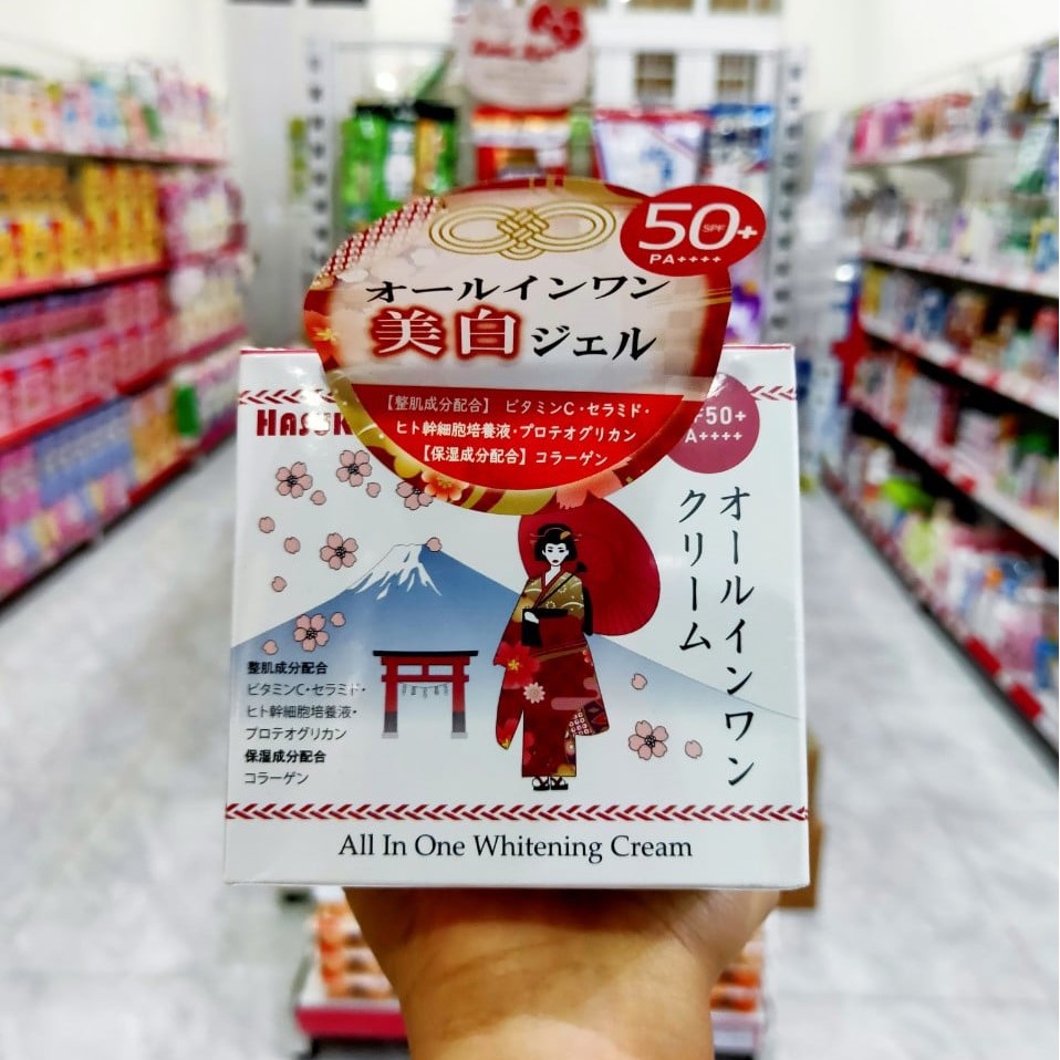 Kem dưỡng ngày ủ trắng da Hasuko All In One Whitening Cream Nhật Bản với khả năng dưỡng da vượt trội giúp da trắng sáng, giảm thâm mụn, nám, tàn nhang,… hiệu quả.