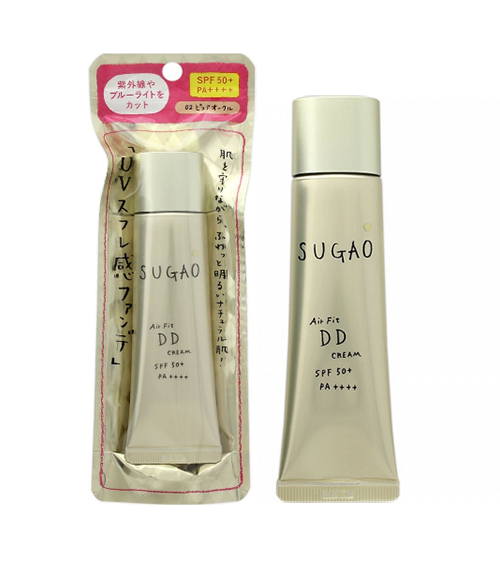 CC Sugao Cream là loại kem trang điểm đa năng hoàn hảo cho những ai thích phong cách tự nhiên. Tuy vậy chỉ số chống nắng khá yếu (SPF23 PA+++) là nhược điểm của sản phẩm này. Sugao Air Fit DD Cream chính là câu trả lời của Rohto với việc nâng cấp chỉ số chống nắng lên SPF50+ PA++++ (cao nhất trong ngưỡng an toàn). DD – Deep Defense ám chỉ khả năng chống nắng cao, hoàn toàn có thể thay thế kem chống nắng hàng ngày của Sugao DD Cream. Sản phẩm là sự lựa chọn hoàn hảo cho phụ nữ bận rộn.