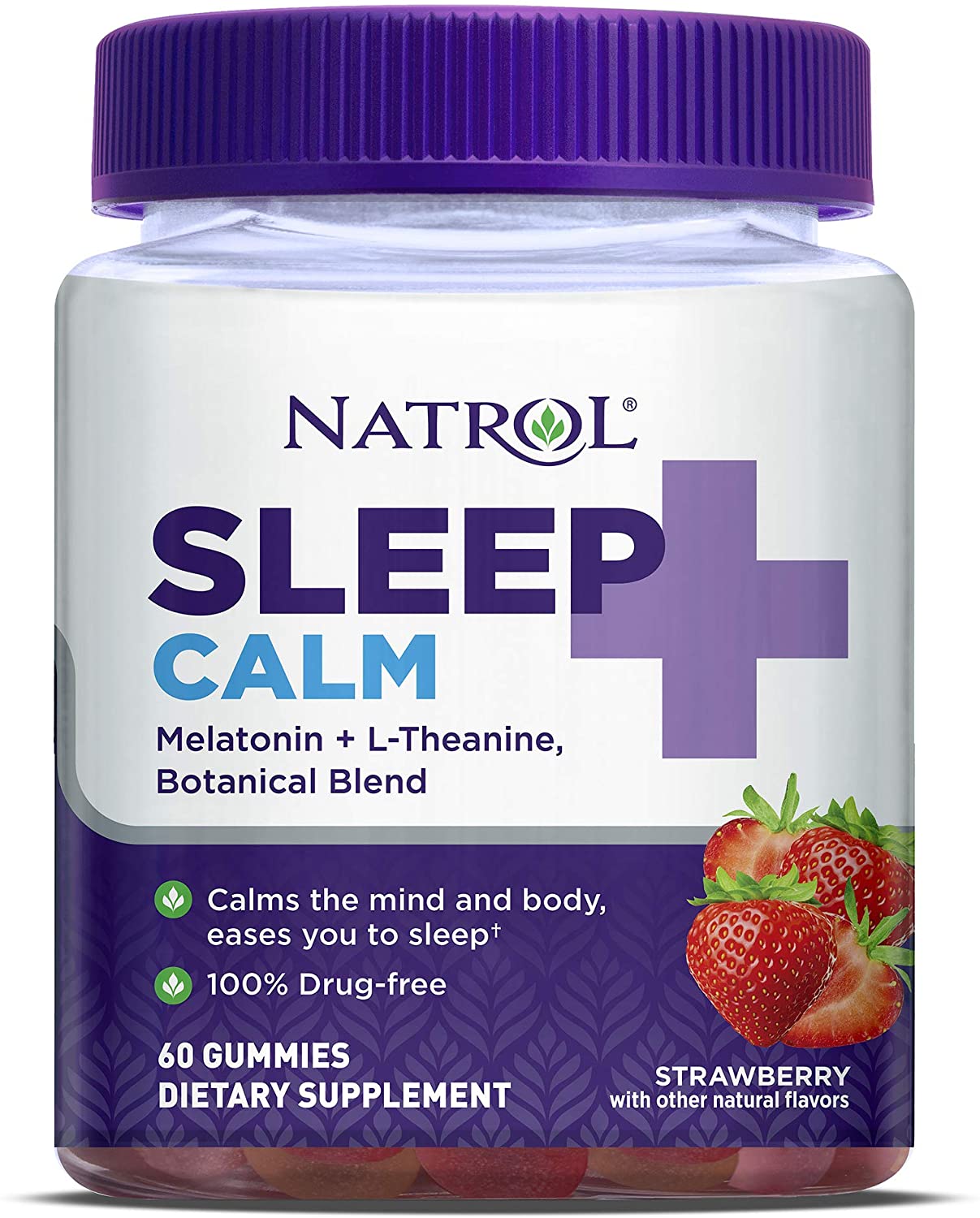 Kẹo dẻo giúp ngủ ngon, làm dịu cơ thể, giảm căng thẳng, mệt mỏi, lo lắng Natrol Sleep Calm Melatonin + L-Theanine, Botanical Blend