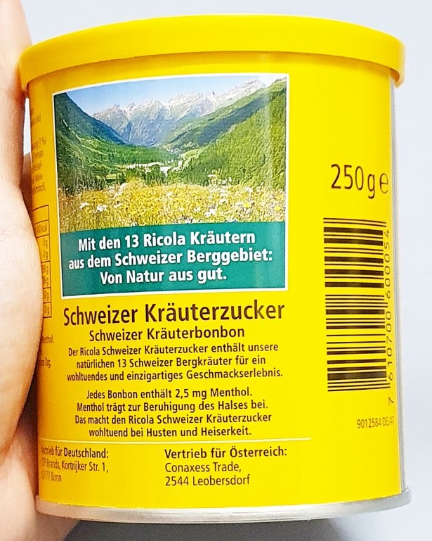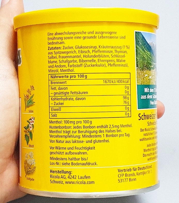 Thành phần Kẹo thảo mộc (ngậm) trị ho Ricola của Đức