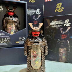 Chai rượu được bọc trong lớp vỏ kim loại mô phỏng bộ giáp Samurai Shogun, với các chi tiết chạm khắc tinh xảo từ mũ kabuto đến thân giáp. Tông màu đồng cổ tạo cảm giác uy nghi, đồng thời giúp hạn chế tác động của ánh sáng lên rượu bên trong. Thiết kế này khiến Shinobu Shogun trở thành lựa chọn nổi bật cho quà biếu cao cấp và sưu tầm.