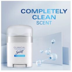 Secret Clinical Strength Completely Clean Invisible Solid Antiperspirant and Deodorant for Women – Giữ cơ thể khô ráo và tươi mát với Secret Clinical Strength Antiperspirant and Deodorant for Women. Chất khử mùi dạng rắn vô hình mạnh mẽ này được đặc chế để bảo vệ 72 giờ chống lại mồ hôi do căng thẳng, đảm bảo bạn luôn thoải mái và tự tin suốt cả ngày. Được bổ sung các khoáng chất cân bằng độ pH, chất khử mùi này được thiết kế để nhẹ nhàng với làn da của bạn đồng thời mang lại khả năng bảo vệ tiên tiến chống lại vi khuẩn gây mùi.