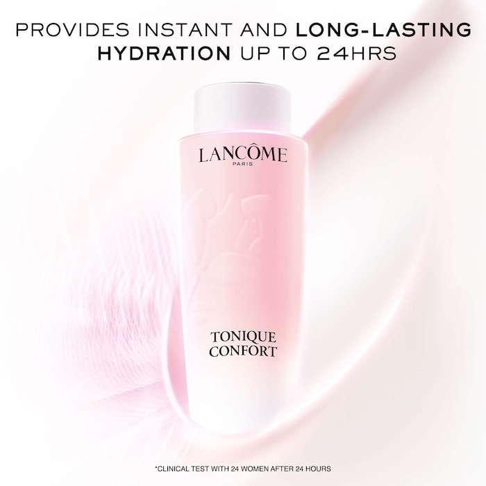 Nước cân bằng dạng sữa Lancôme Tonique Confort Hydrating Facial Toner nhẹ dịu với Hyaluronic Acid là bước dưỡng không thể thiếu trong chu trình chăm sóc da, đặc biệt dành cho làn da thiếu ẩm, khô ráp hoặc mất nước sau khi rửa mặt. Sản phẩm giúp cấp ẩm sâu chỉ sau 30 phút, đồng thời củng cố hàng rào độ ẩm tự nhiên, mang lại làn da mềm mượt, căng bóng và tràn đầy sức sống.