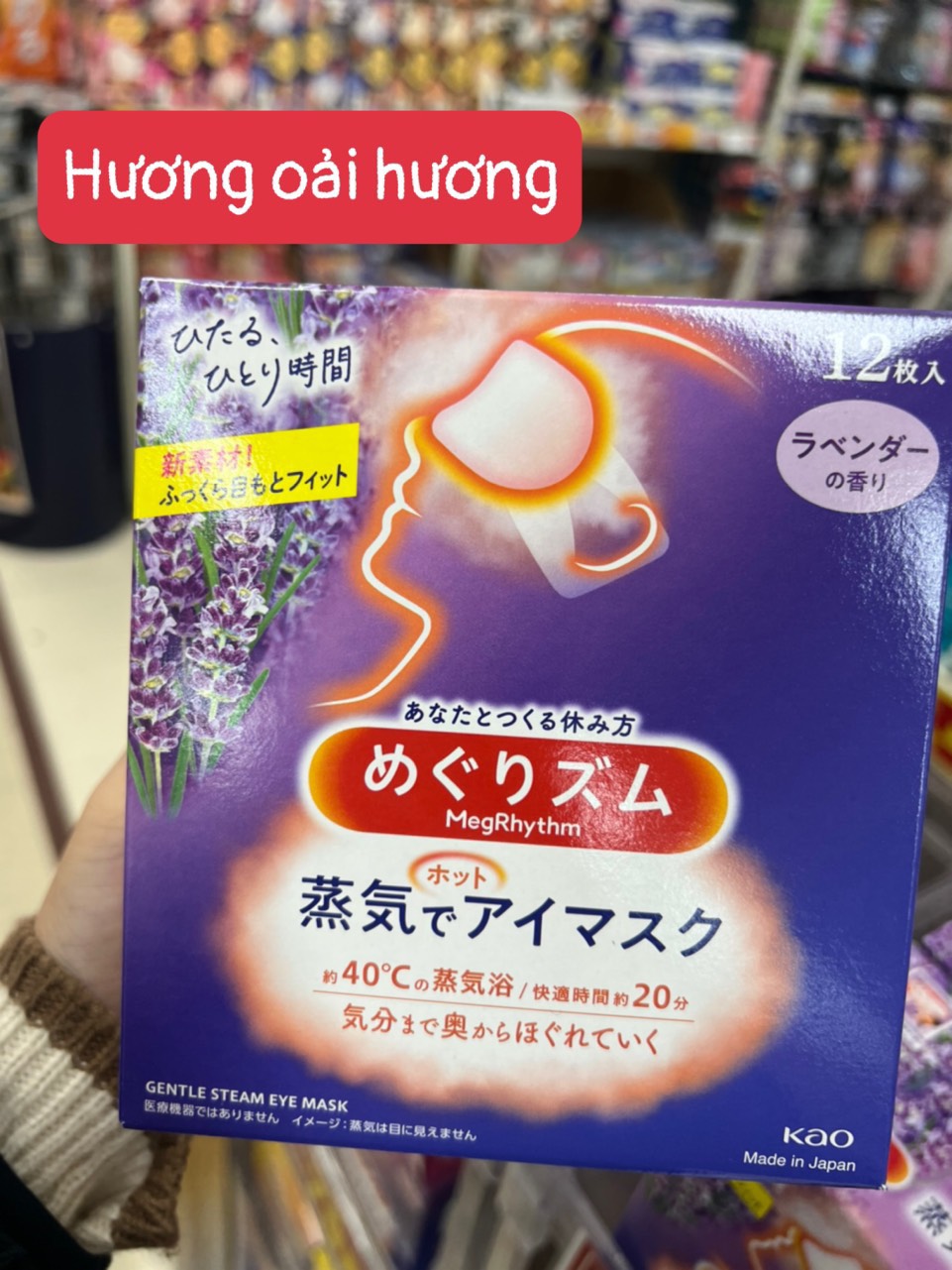 Hơi nóng có tác dụng làm mạch máu giãn nở, giúp máu huyết lưu thông tốt hơn, đưa lượng dinh dưỡng trong máu đến nuôi tế bào nhanh hơn. Đồng thời hơi nóng giúp thải độc tố ra bên ngoài tốt hơn, giúp cơ thể tỉnh táo, sảng khoái,.. Mặt nạ mắt Kao với mùi hương lavender quyến rũ, nhẹ nhàng đem đến cảm giác thư giãn dễ chịu. Hương Lavender được dùng rất nhiều trong mỹ phẩm, nó giúp làm dịu hệ thần kinh, giảm lo âu, mệt mỏi, căng thẳng, giúp bạn cảm thấy thoải mái và ngủ ngon hơn.