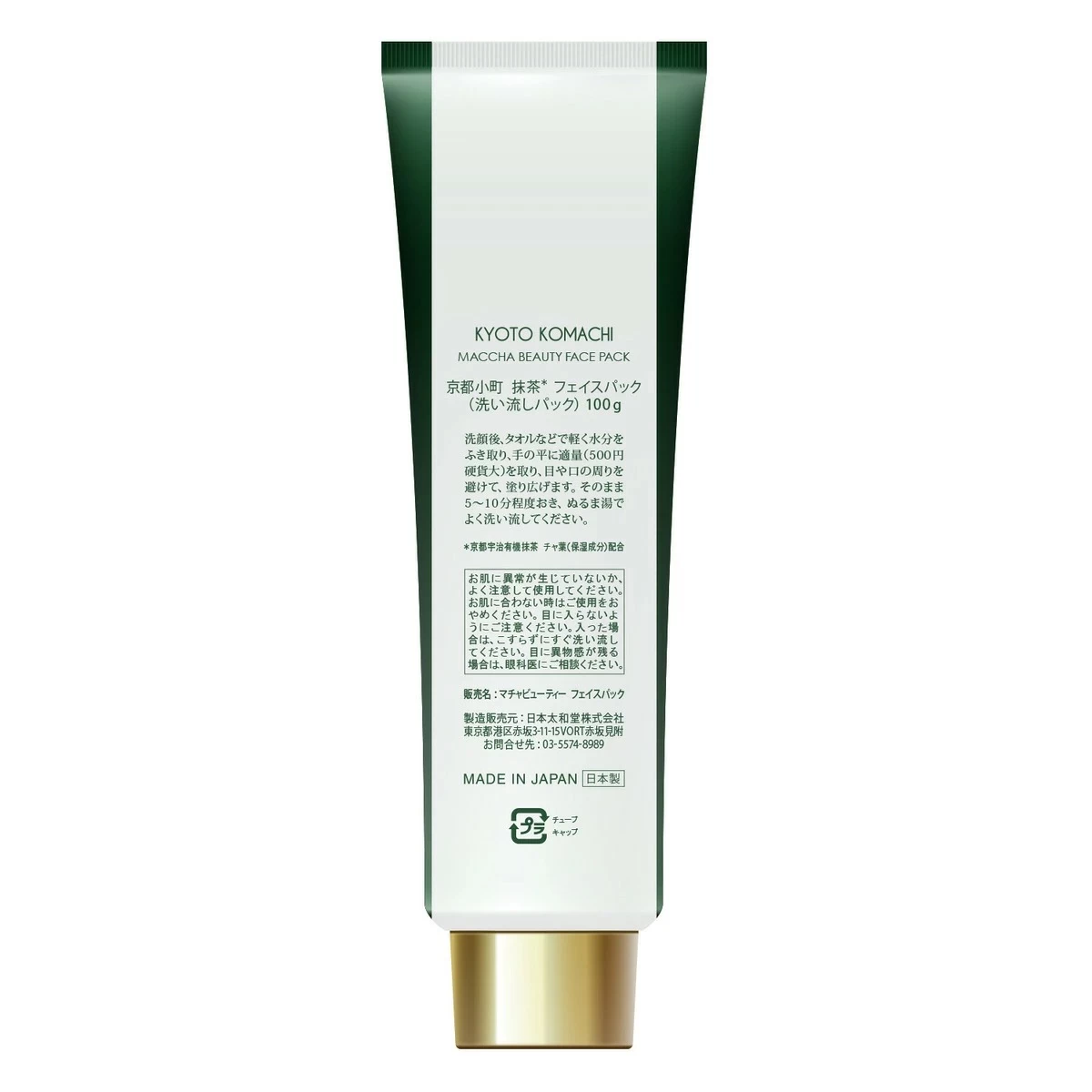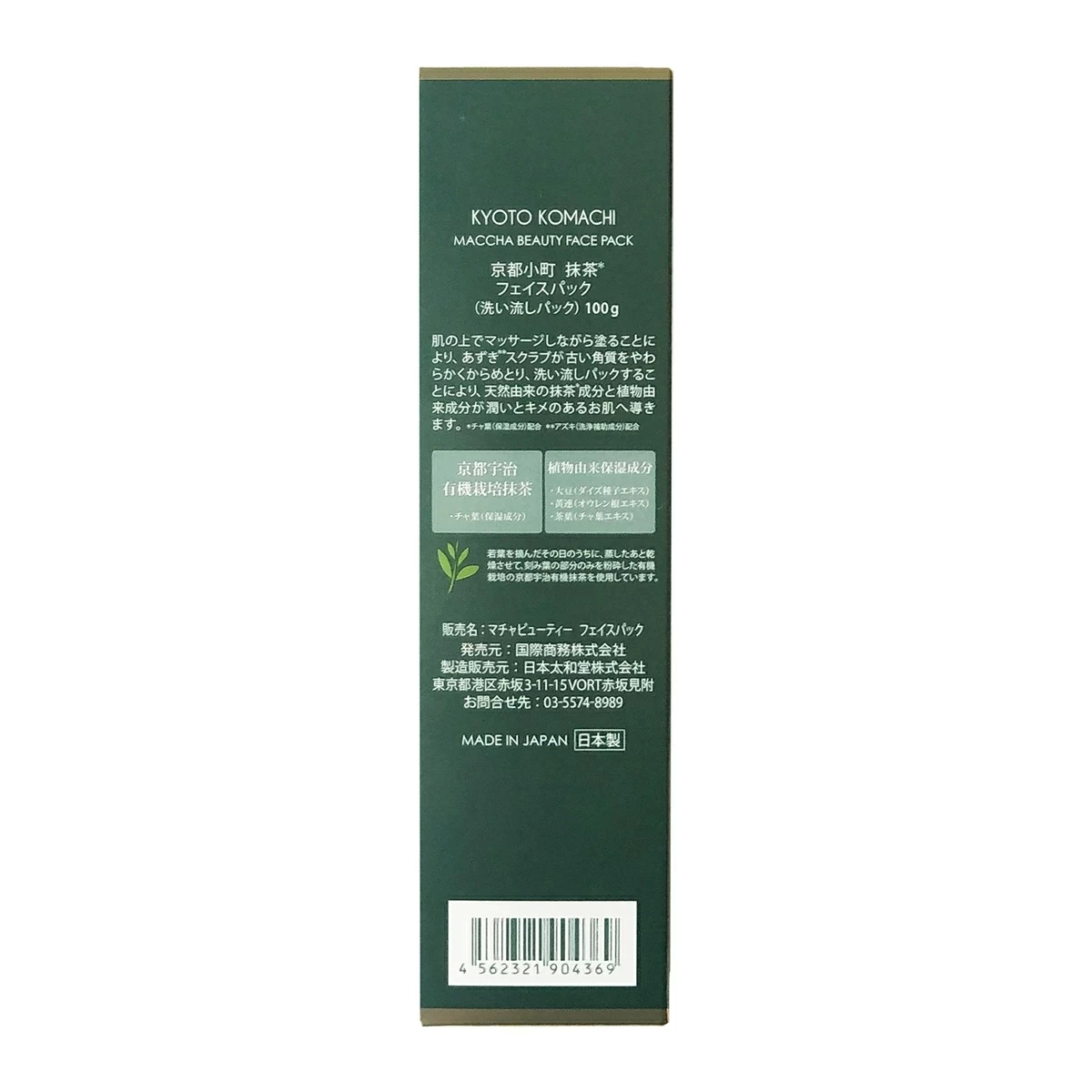 Nhìn vào thiết kế thực tế, sản phẩm mang đậm tinh thần truyền thống của Nhật Bản với vỏ hộp giấy màu xanh lá mạ đặc trưng của Matcha. Tên thương hiệu “Kyoto Komachi” cùng họa tiết lá trà được in nổi bật, tinh tế. Đặc biệt, nhãn dán màu vàng trên nắp hộp với dòng chữ Nhật khẳng định rõ tính năng “2 in 1”: rửa sạch bằng trà xanh và dưỡng ẩm bằng trà xanh.