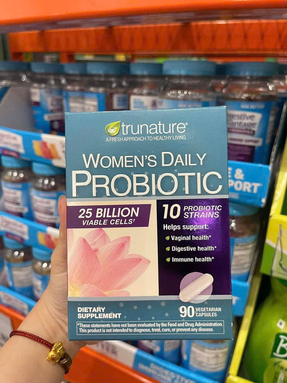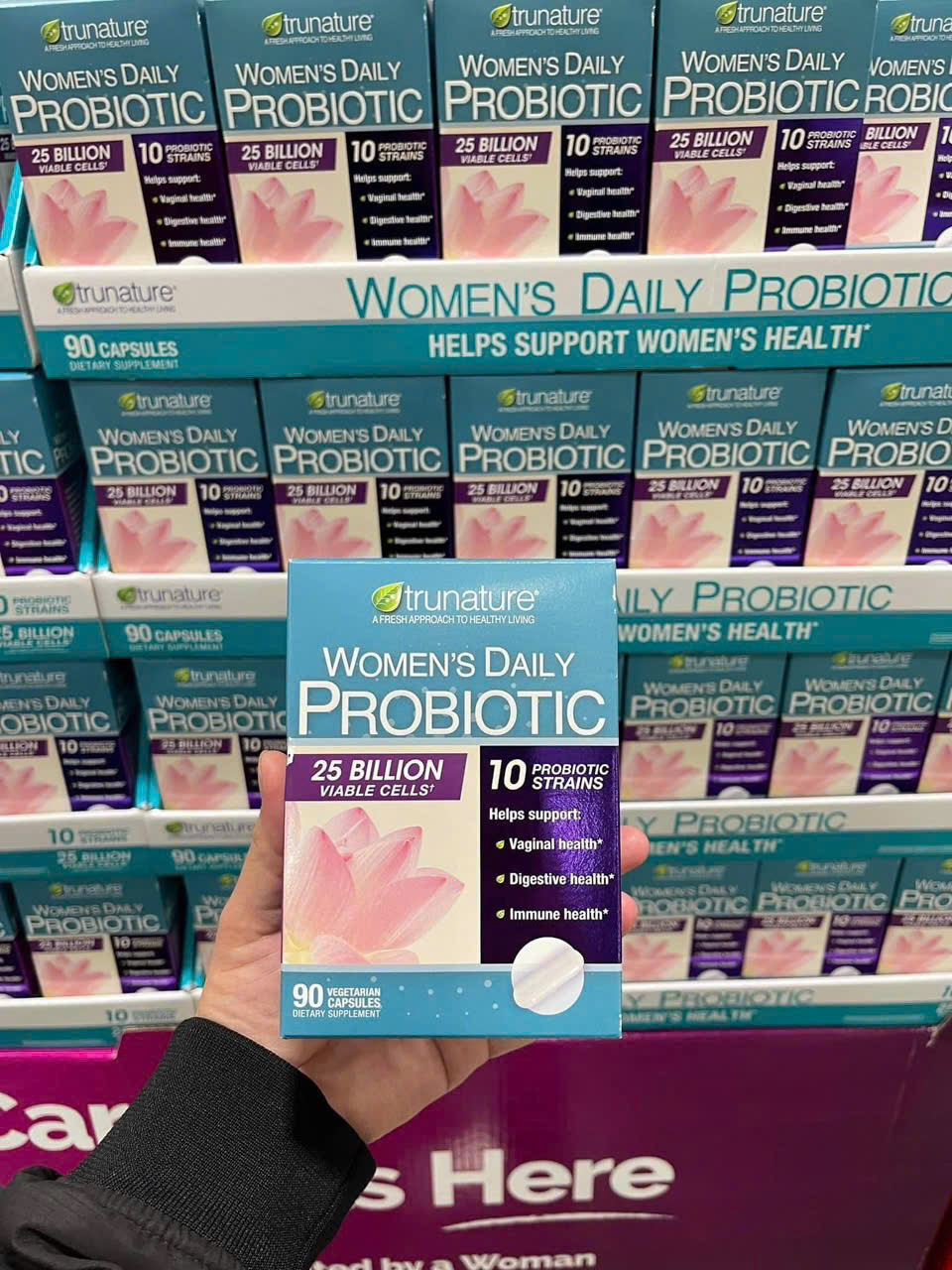 Khi hệ vi sinh âm đạo và đường ruột có đủ lợi khuẩn, vi khuẩn có hại sẽ bị ức chế, giúp môi trường sinh lý ổn định hơn. Trunature Women’s Daily Probiotic cung cấp các chủng lợi khuẩn đã được chứng minh lâm sàng có khả năng đi qua hệ tiêu hóa và hỗ trợ duy trì hệ vi sinh âm đạo khỏe mạnh, từ đó góp phần bảo vệ sức khỏe phụ nữ toàn diện.