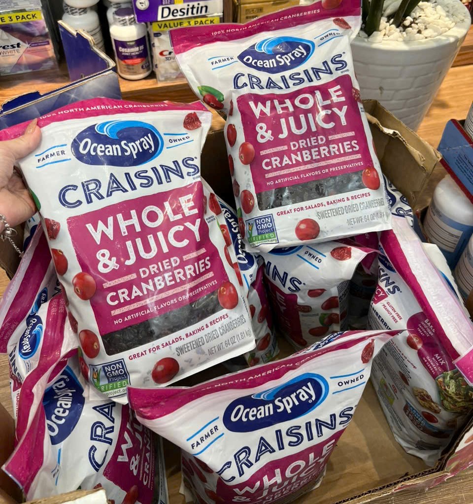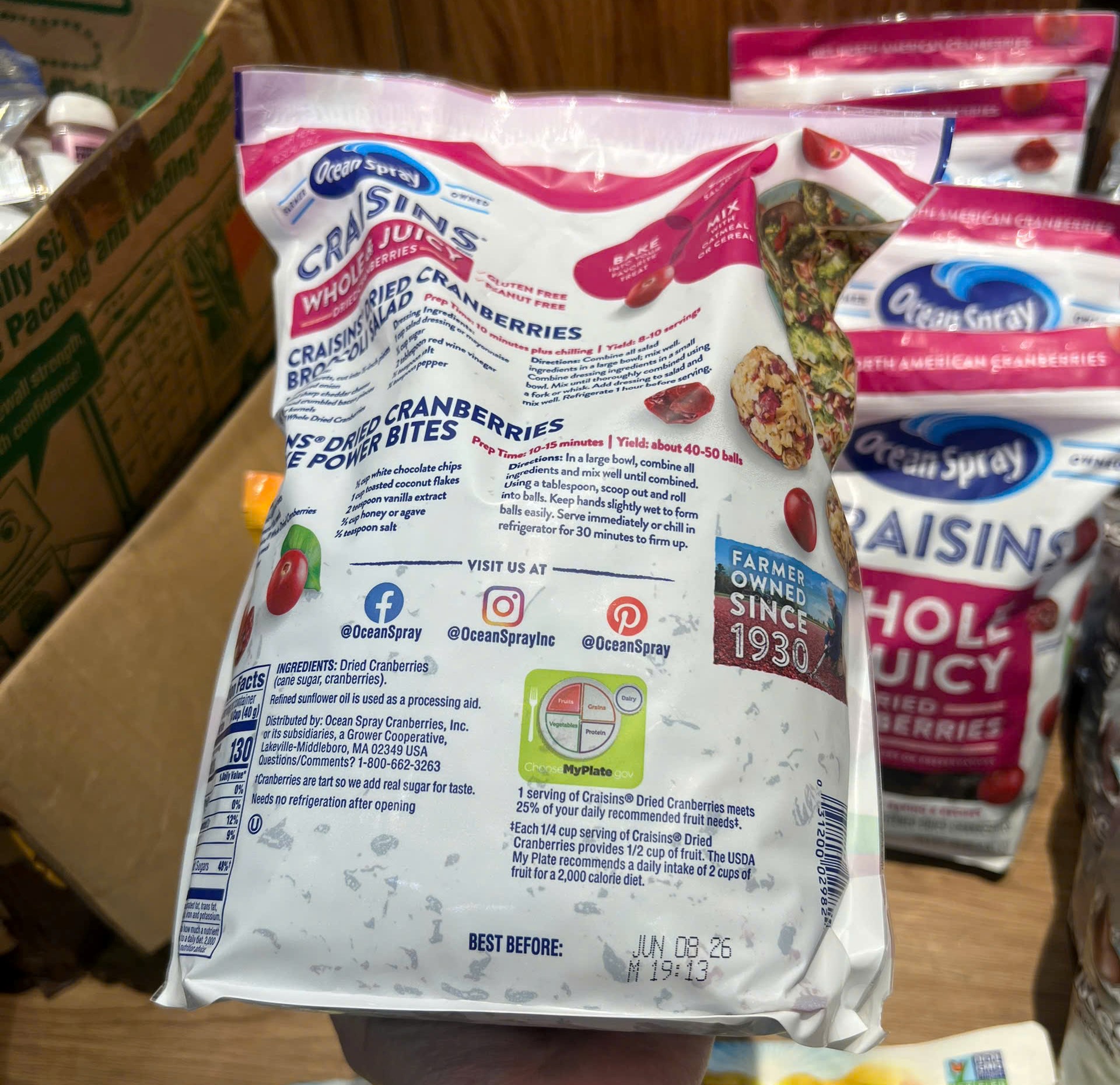 Ocean Spray Craisins được làm từ nam việt quất Bắc Mỹ chọn lọc, sấy khô nhẹ để giữ độ mọng nước và hương vị tự nhiên. Phiên bản Whole & Juicy giữ nguyên trái cho trải nghiệm miếng ăn tròn vị; trong khi Reduced Sugar có ít đường hơn 50% so với bản truyền thống, phù hợp người muốn giảm ngọt nhưng vẫn thích vị cranberry chua dịu.