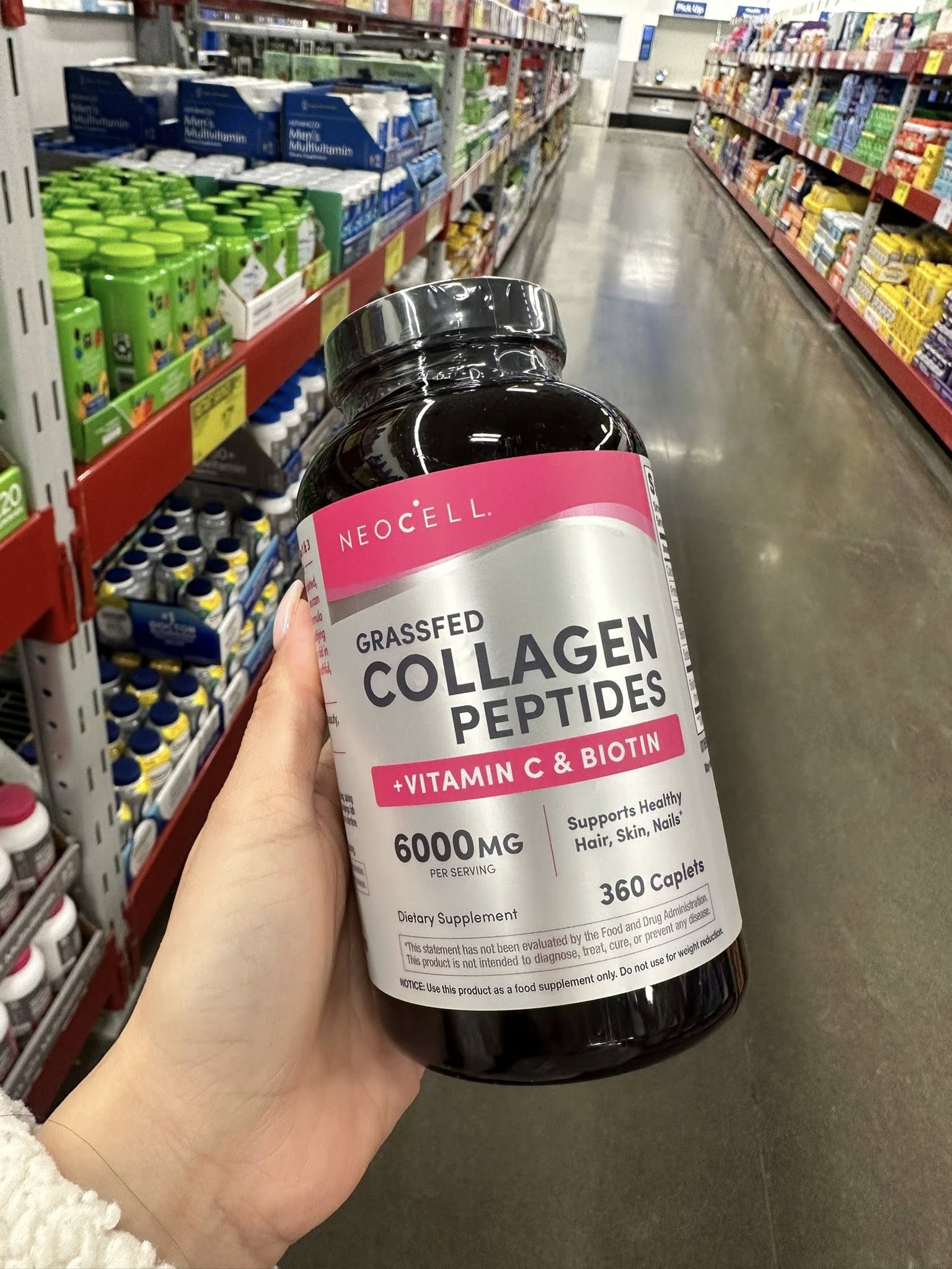 NeoCell Grassfed Collagen Peptides + Vitamin C & Biotin 6000mg 360 viên là thực phẩm bổ sung collagen dạng viên của Mỹ, phù hợp với người muốn bổ sung collagen hằng ngày theo cách gọn tiện và dễ duy trì. Công thức kết hợp collagen peptides cùng vitamin C và biotin, hướng đến nhu cầu chăm sóc da, tóc và móng trong routine mỗi ngày. Theo thông tin hãng công bố cho dòng này, sản phẩm cung cấp 6.000mg collagen peptides mỗi khẩu phần và được thiết kế ở dạng viên dễ dùng, tiện mang theo.