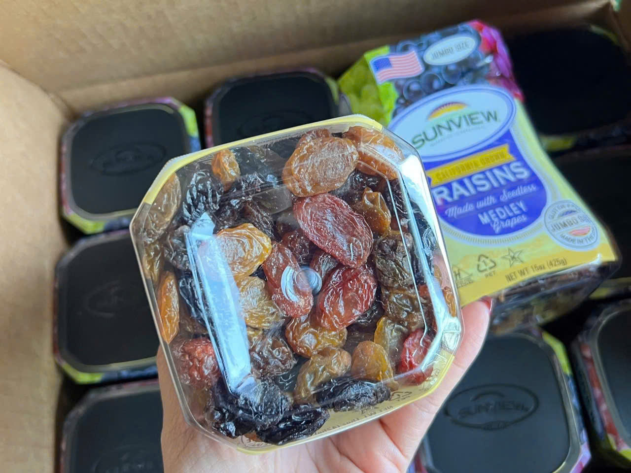 Nho khô Sunview California Grown Raisins Medley Grapes là dòng nho khô tổng hợp cao cấp, được làm từ nho không hạt trồng tại California (Mỹ) – vùng nguyên liệu nổi tiếng với điều kiện tự nhiên lý tưởng cho nho khô chất lượng cao. Sản phẩm kết hợp nhiều màu nho (vàng – nâu – sẫm), cho hương vị ngọt dịu tự nhiên, dẻo mềm, dễ ăn và tiện dùng mỗi ngày.