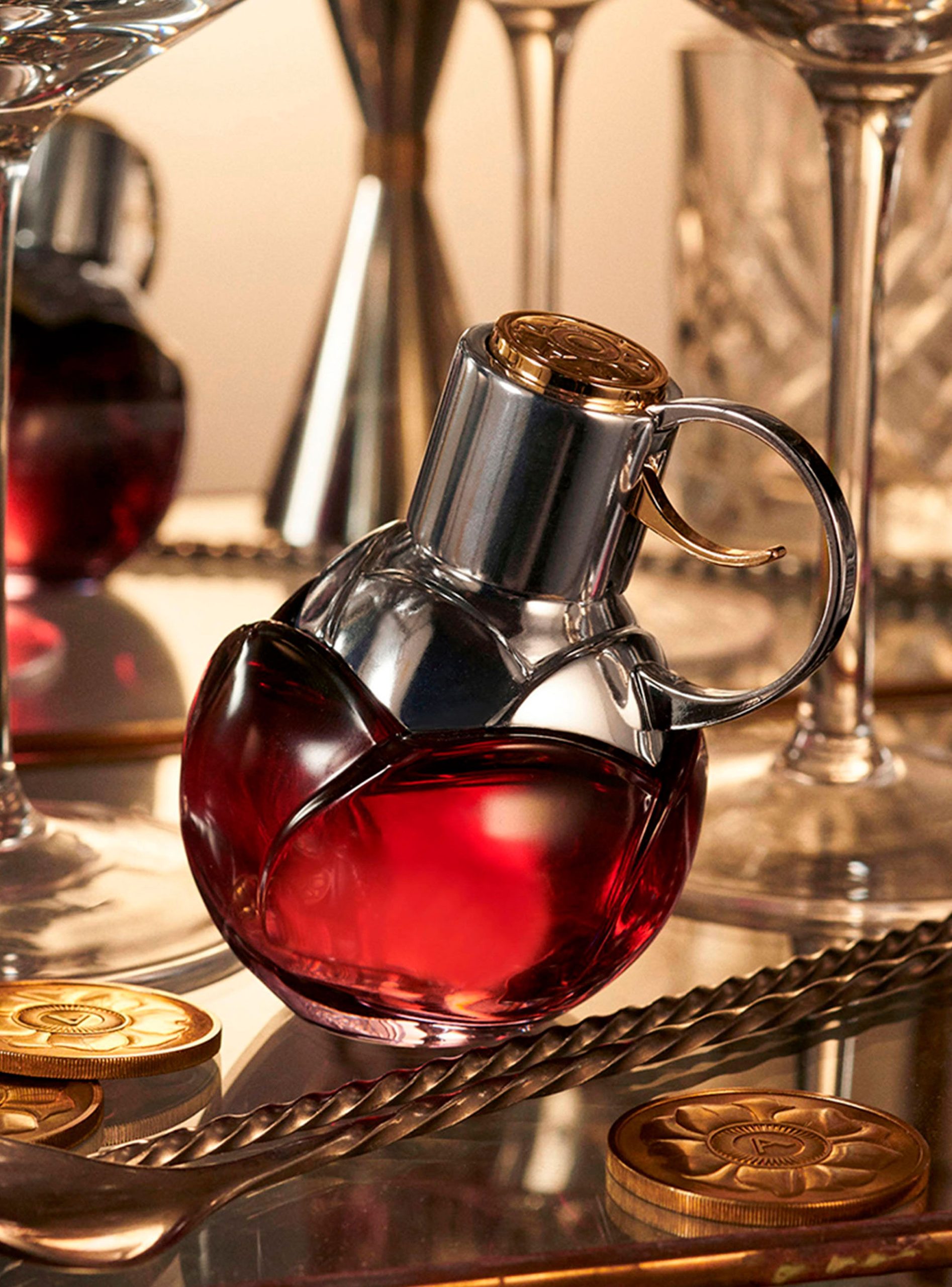Azzaro Wanted Girl By Night được làm theo hình cầu thủy tinh với những nét chạm khắc tạo hình cánh hoa ngọt ngào cùng với màu hồng đậm vừa bí ẩn lại quyến rũ, kiêu sa. Chúng giống như một viên ngọc ẩn chứa thứ sức mạnh vô hình có thể chiếm lấy mọi tâm hồn rung động ngay từ cái nhìn đầu tiên. Phần nắp và cổ chai được trang trí xen kẽ bởi màu vàng kim và bạc sáng lấp lánh, khiến cho tổng thể thiết kế trở nên sang trọng và tinh tế gấp bội phần.
