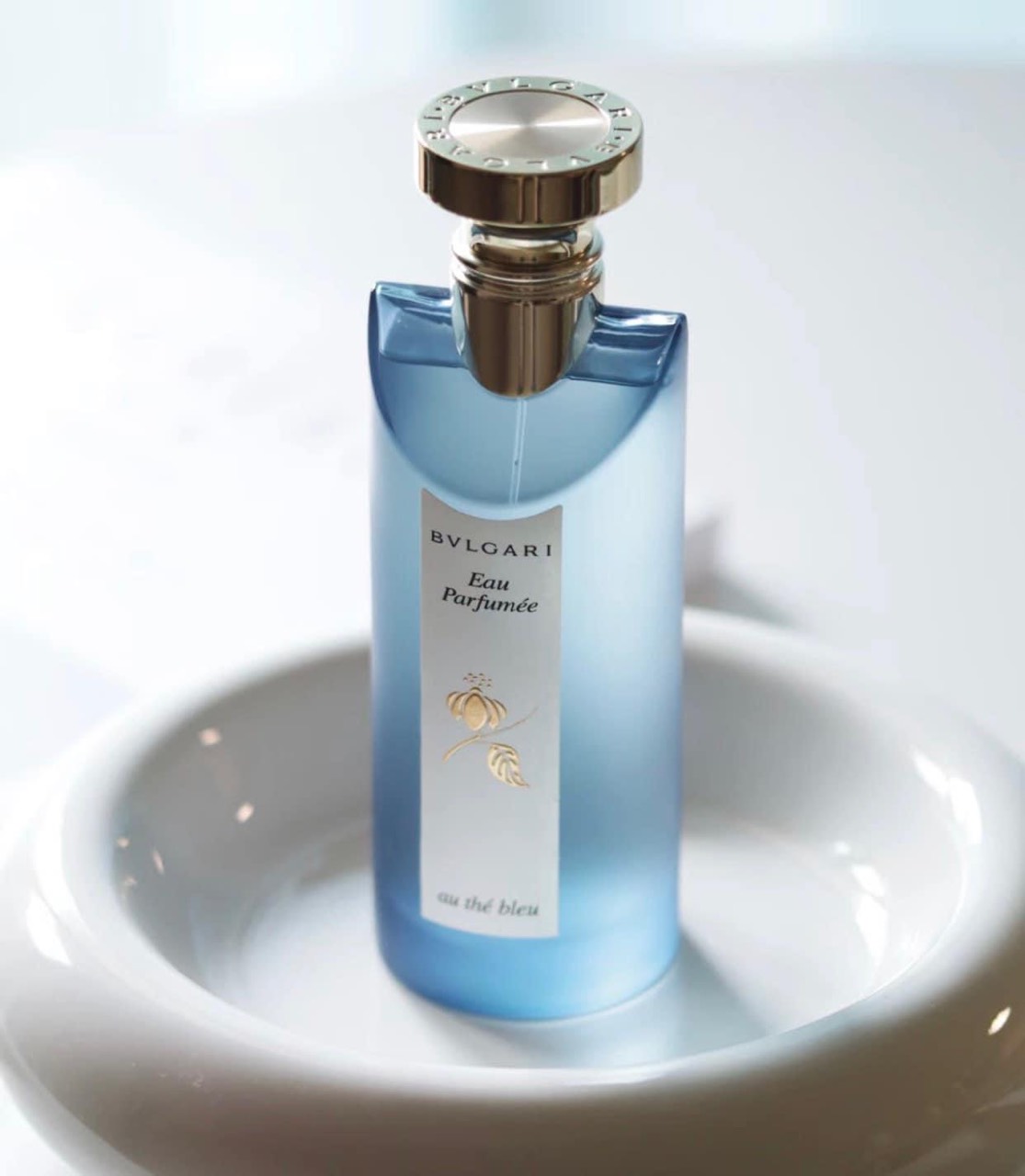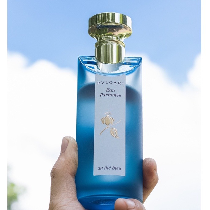 Sắc xanh lam của chai nước hoa Bvlgari Eau Parfumee Au The Bleu tượng trưng cho một tách trà olong được pha loãng có thể phản chiếu được cả màu xanh của bầu trời thu. Mùi hương là sự cân bằng giữa hương thơm của trà với sự sắc xảo của hoa oải hương, một chút vị phấn ngọt của hoa iris và thoáng chút dịu dàng của hoa violet. Có thể nói khi trà và hoa hợp nhất chính là điều mà Au The Bleu thể hiện một cách khéo léo và tài tình, nếu được chọn vị trà tao nhã nhất trong bộ sưu tập này thì chắc chắn danh hiệu đó phải thuộc về Au the Bleu.