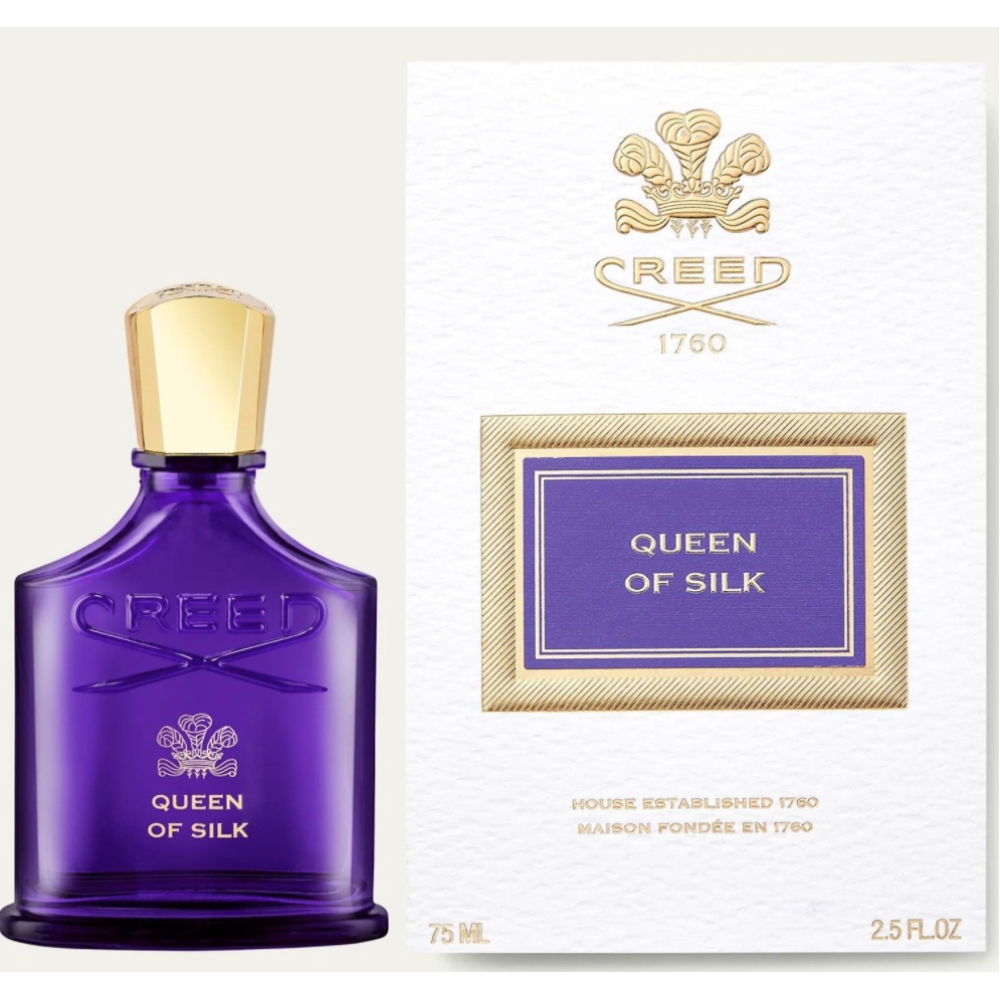 Nước hoa Creed Queen Queen Of Silk của Creed là mùi hương thuộc nhóm Amber Floral, được ra mắt năm 2024. Lấy cảm hứng từ những dải lụa – biểu tượng của sự huyền bí và kiêu sa, Creed đã mang đến một Queen Of Silk cổ điển đầy mê hoặc, rực rỡ và mềm mại, nhẹ nhàng và ấm áp, lả lướt kiêu sa nhưng vẫn đầy cuốn hút. Vẻ đẹp này thể hiện rất rõ ở thiết kế và mùi hương bên trong.