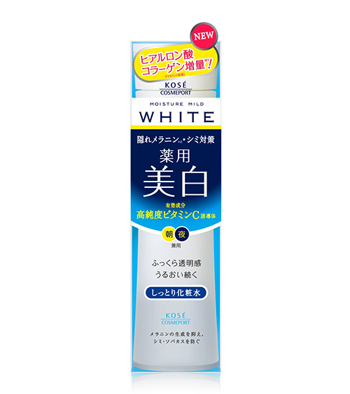 - Dẫn xuất vitamin C với độ tinh khiết cao tiếp cận hắc tố melanin ẩn sâu dưới da, đồng thời ức chế quá trình hình thành melanin. Lotion Kose Mild White giúp dưỡng trắng da, làm mờ nhanh các vết thâm, tàn nhang, đốm nâu trên da.