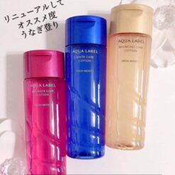Shiseido Aqualabel Lotion có 3 màu xanh, đỏ, vàng tương ứng với các dòng dưỡng trắng, cân bằng ẩm, chống lão hóa. Phiên bản 2020 chia mỗi dòng làm 2 loại theo 2 mức độ ẩm: