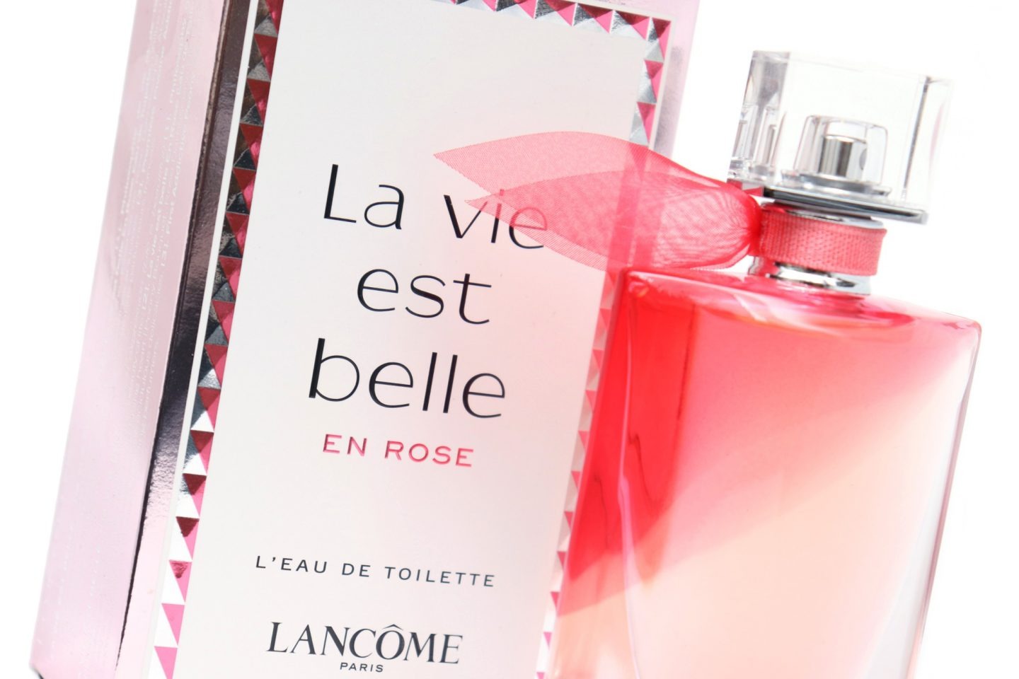 La Vie Est Belle En Rose sở hữu thiết kế khác biệt so với những mùi hương cùng dòng với dải màu hồng cắt xuyên qua đỉnh chai như muốn nói cuộc sống được nhìn qua lăng kính màu hồng. Chiếc nơ ruy băng như đôi cách quấn quanh cổ chai cũng được tô điểm với sắc hồng càng làm cho La Vie Est Belle En Rose thêm lãng mạn và thanh tao.