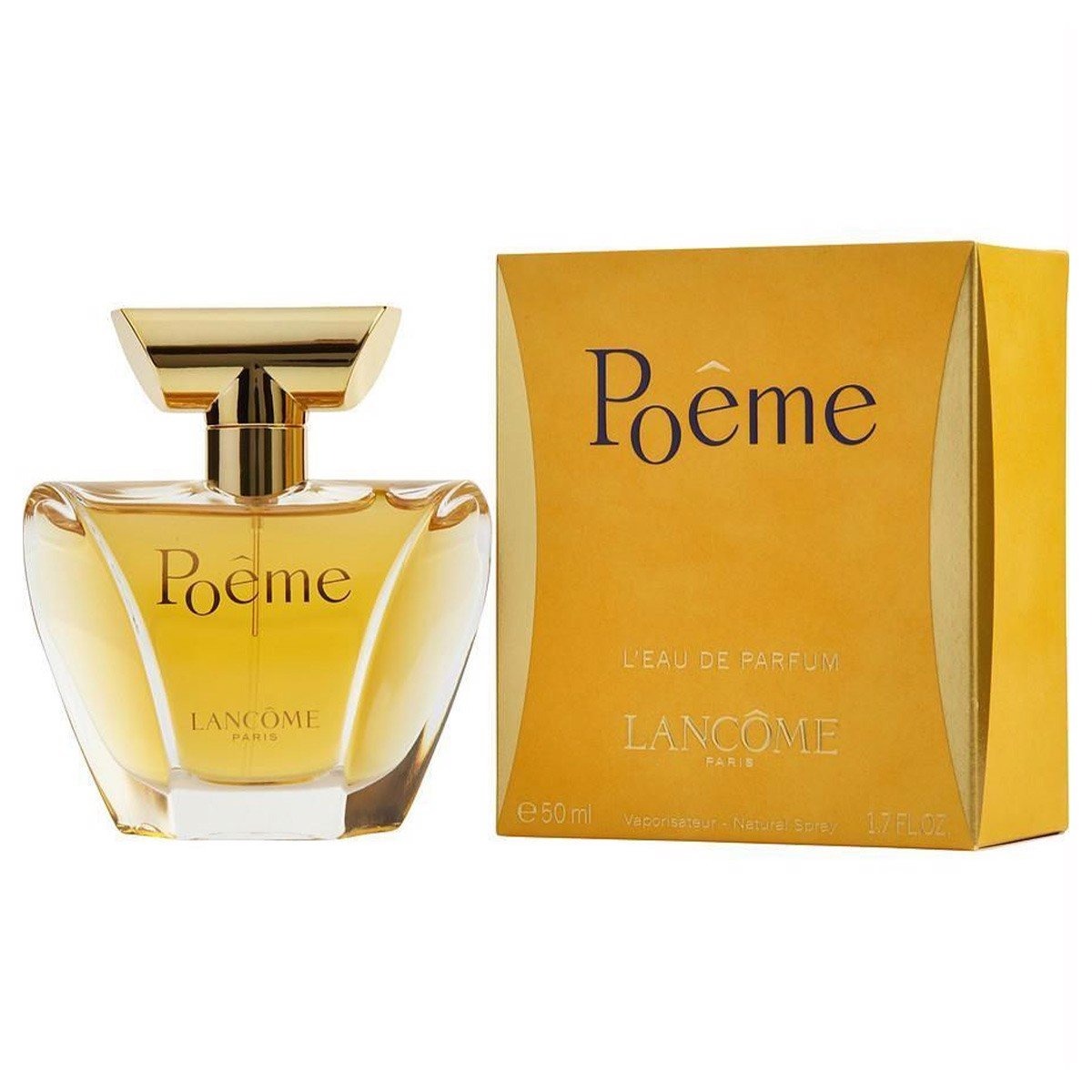Sự lãng mạn, quyến rũ và sang trọng toát ra không chỉ từ nắp chai với thiết kế chữ T lấp lánh ánh vàng mà còn từ sự tượng phản đầy tính sáng tạo trong kiểu dáng kết hợp giữa đường thẳng và đường cong vừa mạnh mẽ vừa quyến rũ. Thân chai hấp dẫn ánh nhìn bằng sắc vàng mật ong hoàn thiện vẻ đẹp quý phái tuyệt vời cho Lancôme Poême.