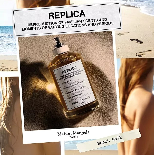 Nước hoa Replica Beach Walk đến từ thương hiệu Maison Margiela có mặt trong bộ sưu tập Replica năm 2012, với tông màu vàng nhạt đẹp và gợi cảm, thể hiện đặc trưng của dòng sản phẩm dành cho phái nữ. Tất cả chi tiết của bộ sưu tập Replica đều được gia công đơn giản nhưng vô cùng tinh tế và đặc biệt.