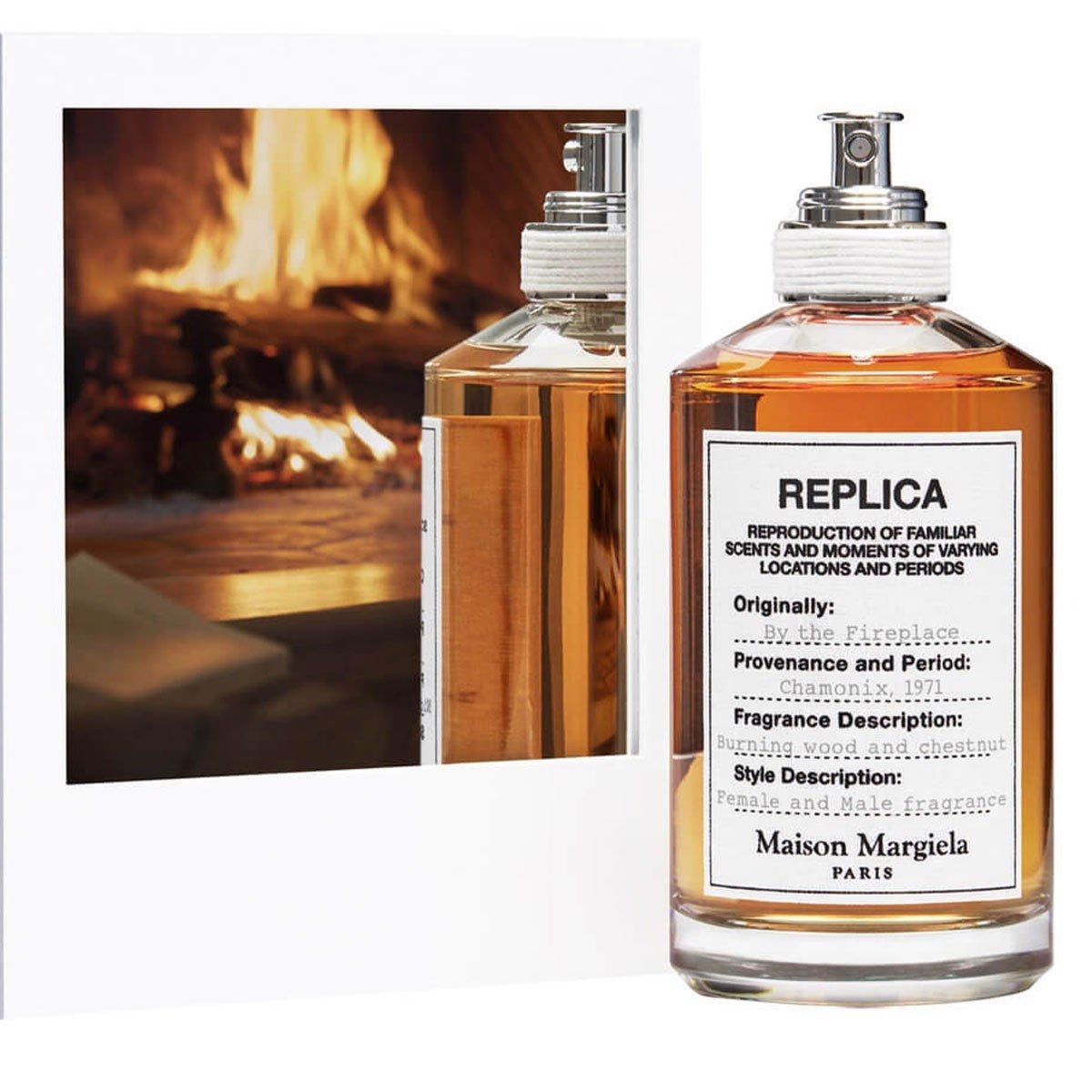 By The Fireplace, một thành viên trong dòng Replica của Maison Margiela, được ra mắt năm 2015 và đã trở thành mùi hương được yêu thích bậc nhất trong bộ Replica cũng như toàn bộ mùi hương của hãng. By The Fireplace được ra đời với mục đích họa lại khung cảnh ấm cúng và ngọt ngào bên cạnh đống lửa ấm, thật là một bức tranh hấp dẫn, và điều khiến mùi hương này thành công chính là nó đã vẽ tròn trịa lên bức tranh ấy.