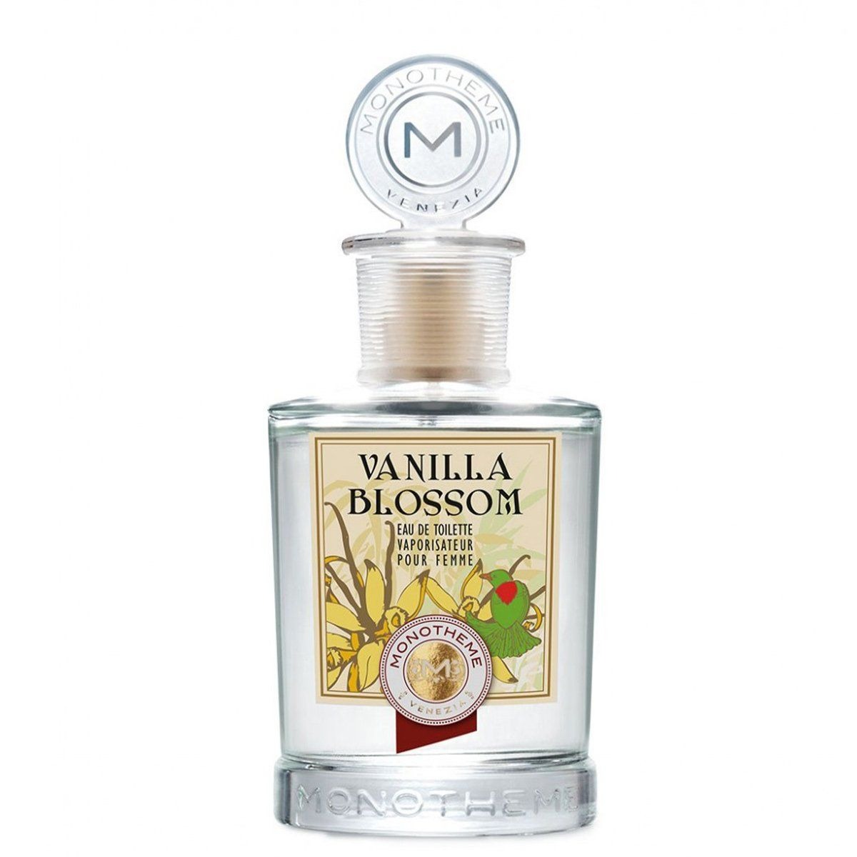 Monotheme Vanilla Blossom được sáng tạo tại Venice, Monotheme Vanilla Blossom là một bộ sưu tập Eau de Toilettes mang hương thơm nam tính và nữ tính, được tôn vinh bởi chất lượng và phong cách thanh lịch cổ điển, cũng như thành phần độc đáo và đặc biệt chế tác nên từng loại mùi hương. Việc chọn các nốt hương sống động có độ lưu hương tốt đến từ sự sáng tạo dựa trên những mùi hương cổ điểm. Những nốt hương này được chế tác dựa trên sự kết hợp phương pháp cũ và mới; điều này giúp khai thác trọn vẹn những khía cạnh khác biệt của các họ hương.