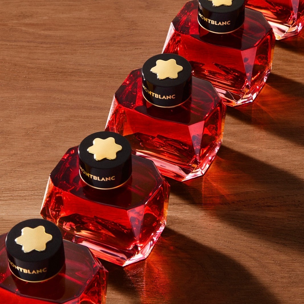Thiết kế chai cũng là một điểm nhấn khó rời mắt. Signature Elixir khoác lên mình lớp thủy tinh đỏ chuyển sắc, tạo hiệu ứng như ánh hoàng hôn đang trượt xuống mặt kính. Nắp chai màu đen, được điểm xuyết bằng chi tiết vàng ánh kim mang biểu tượng Montblanc, khiến tổng thể vừa sang trọng vừa bí ẩn. Hộp đựng được thiết kế theo phong cách da Saffiano – tinh tế, gọn gàng và đúng chất Montblanc: cao cấp nhưng không phô trương.