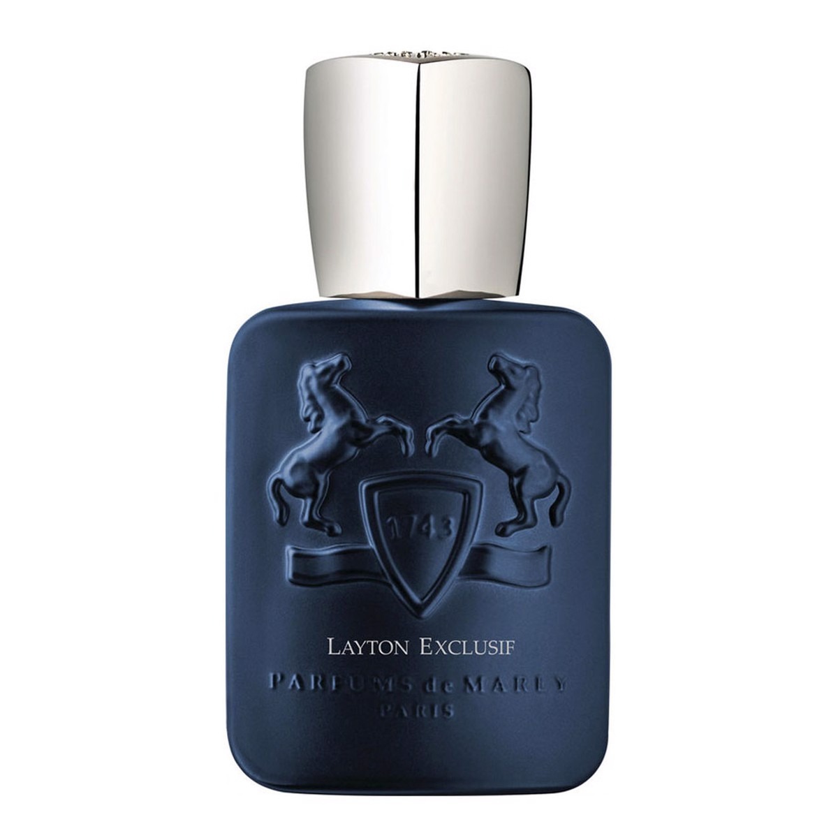 Thiết kế chắc tay khi cầm và sắc xanh cá tính khiến vẻ ngoài của Parfums De Marly Layton Exclusif đầy mạnh mẽ, gai góc, đầy nam tính. Hình ảnh hai chú ngựa mạnh mẽ lấy cảm hứng từ những cuộc đua ngựa của giới hoàng gia và quý tộc Pháp ở những thế kỷ trước.