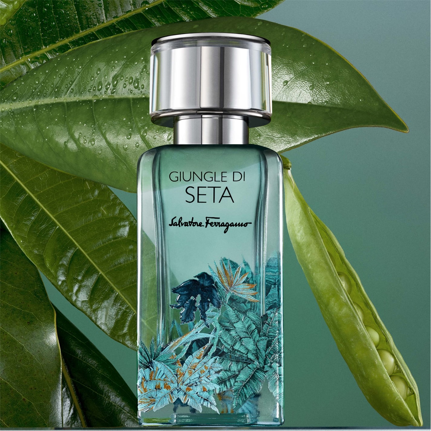 Nước hoa Salvatore Ferragamo Giungle Di Seta là một trong bốn mùi hương của bộ sưu tập này. Thiết kế ra đời nhằm tôn vinh những sáng tạo lụa mang tính biểu tượng của Salvatore Ferragamo, đã trở thành thương hiệu thời trang kể từ khi những mảnh lụa đầu tiên của họ ra mắt vào những năm 1960. Giungle di Seta EDP được ra mắt vào năm 2021 của Salvatore Ferragamo, lấy cảm hứng từ những cảnh quan xa xôi và bí ẩn, mời bạn bước vào rừng rậm, một mùi hương unisex thuộc nhóm hương Hoa cỏ. Là sản phẩm sáng tạo kết hợp giữa Alienor Massenet và Emilie Coppermann.