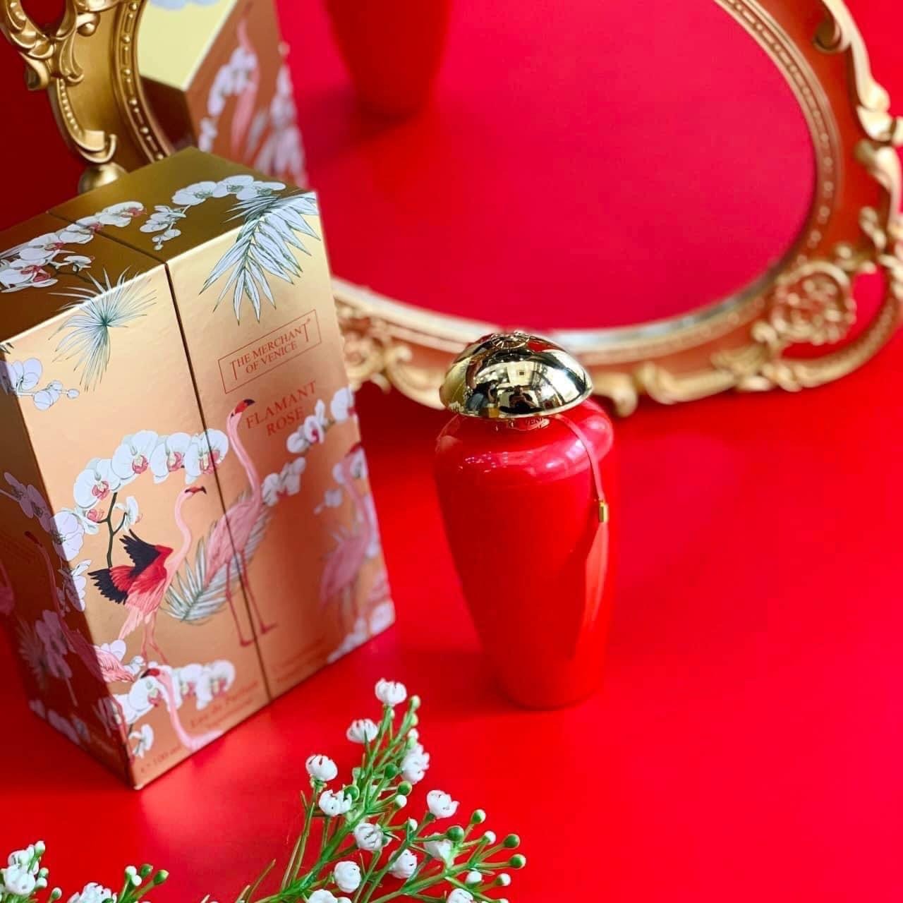 The Merchant of Venice Flamant Rose sở hữu thiết kế đặc trưng của thương hiệu với gam màu đỏ ôm quyền lực, nữ tính ôm trọn cả thân chai. Có thể nói từ hương thơm đến thiết kế, thương hiệu đều thành công thể hiện tinh thần một cách xuất sắc.