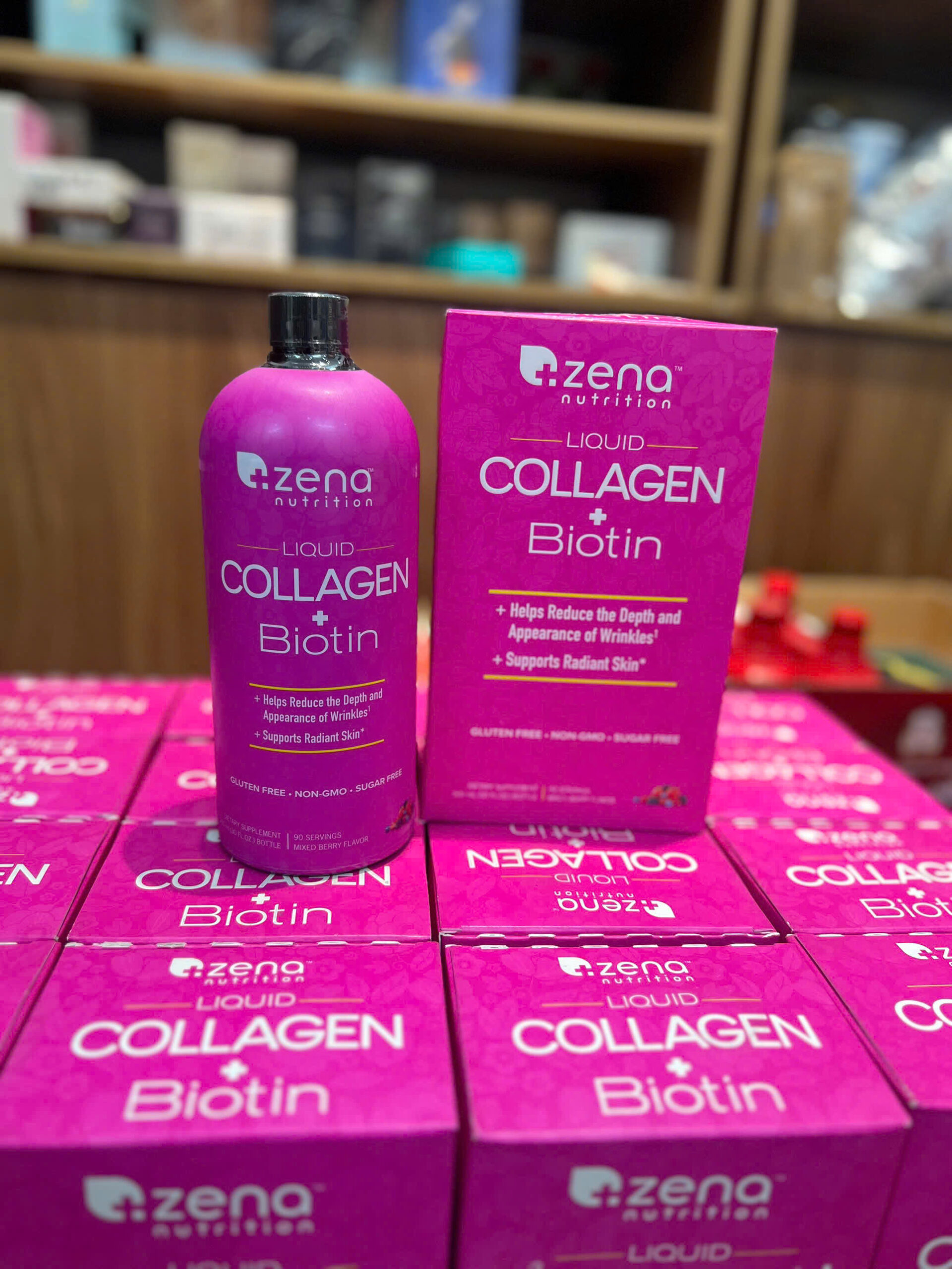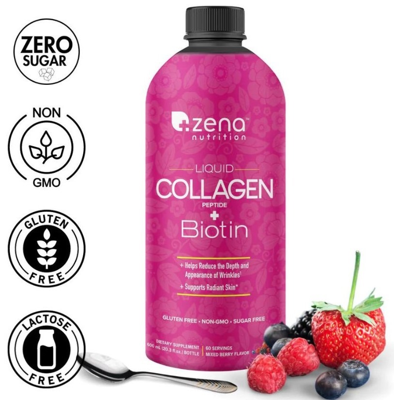1️⃣ Giới thiệu sản phẩm Zena Liquid Collagen + Biotin 5000mcg – Hỗ Trợ Da Căng Mịn, Tóc Khỏe