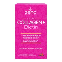 Zena Nutrition Liquid Collagen Peptides and Biotin là nước uống bổ sung collagen dạng lỏng, kết hợp collagen peptide thủy phân và biotin liều cao, hỗ trợ chăm sóc da – tóc – móng – xương khớp từ bên trong.