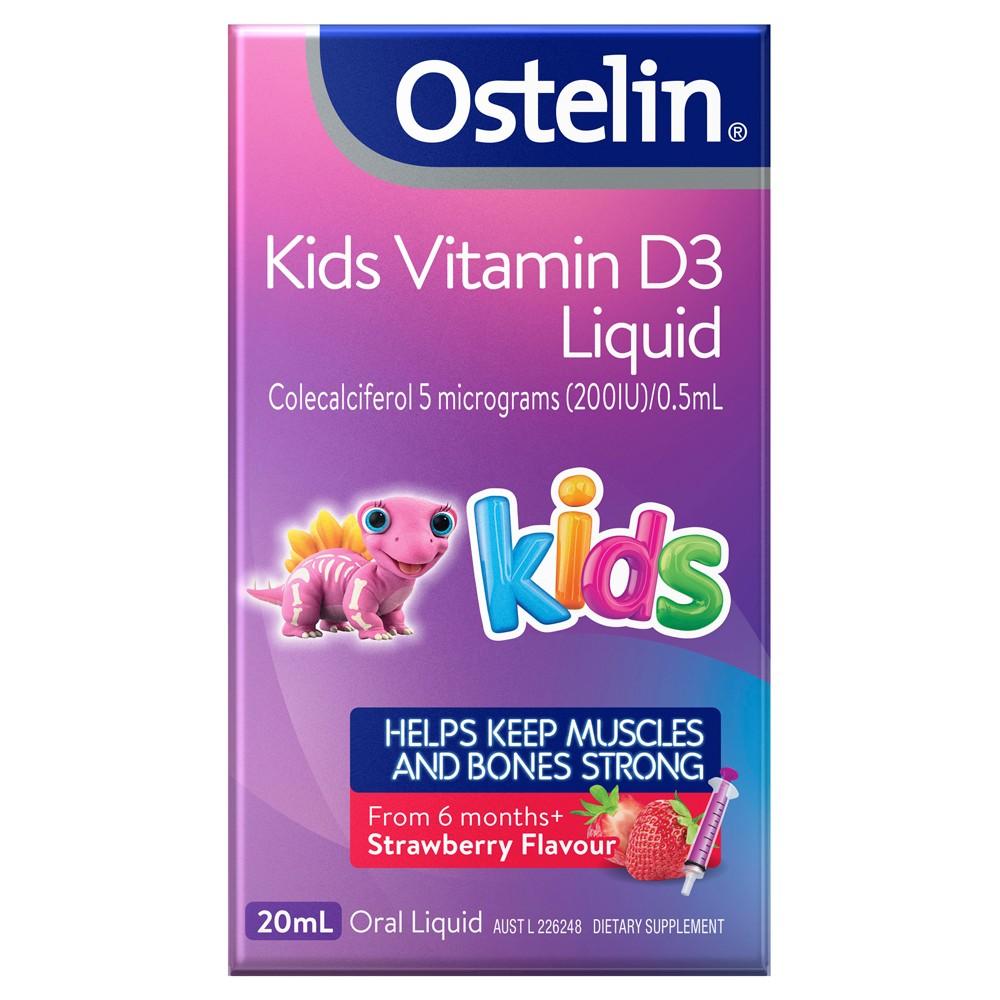 Ở Úc, thương hiệu vitamin D số 1, Ostelin Liquid Vitamin D3 Kids cho trẻ em cung cấp 200IU vitamin D3 mỗi liều 0.5mL với cách sử dụng ống tiêm nhựa dễ dàng, hiệu quả mà vẫn đảm bảo cung cấp liều lượng chính xác.
