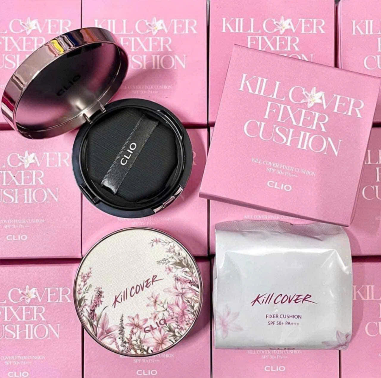 Cushion Clio Kill Cover Fixer SPF50 PA+++ (Floral Tea Garden) thuộc BST Limited mới nhất của nhà Clio với thiết kế thanh lịch, ngọt ngào đầy nữ tính. Ngoài ưu điểm che phủ đỉnh của chóp, đem lại làn da không tì vết thì còn có khả năng kiểm soát dầu thừa cho lớp nền khô thoáng trong nhiều giờ nữa. Tất cả là nhờ công thức hạt phấn oil cutting power cùng các thành phần chiết xuất từ thiên nhiên đó.