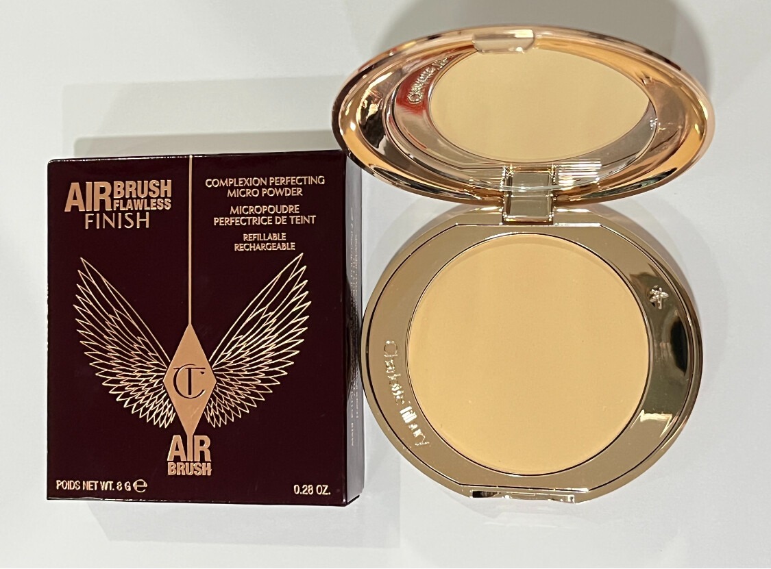 - Phấn phủ Charlotte TilburyAirbrush Flawless Finish có khả năng kiềm dầu tốt, không hề gây cảm giác nặng mặt. Các hạt phấn nhanh chóng tiệp vào da và tạo cảm giác tự nhiên, thoải mái như chưa hề phủ phấn. Chất phấn kết cấu hạt phấn siêu lì cho lớp nền chắc chắn cho cả ngày hoạt động.