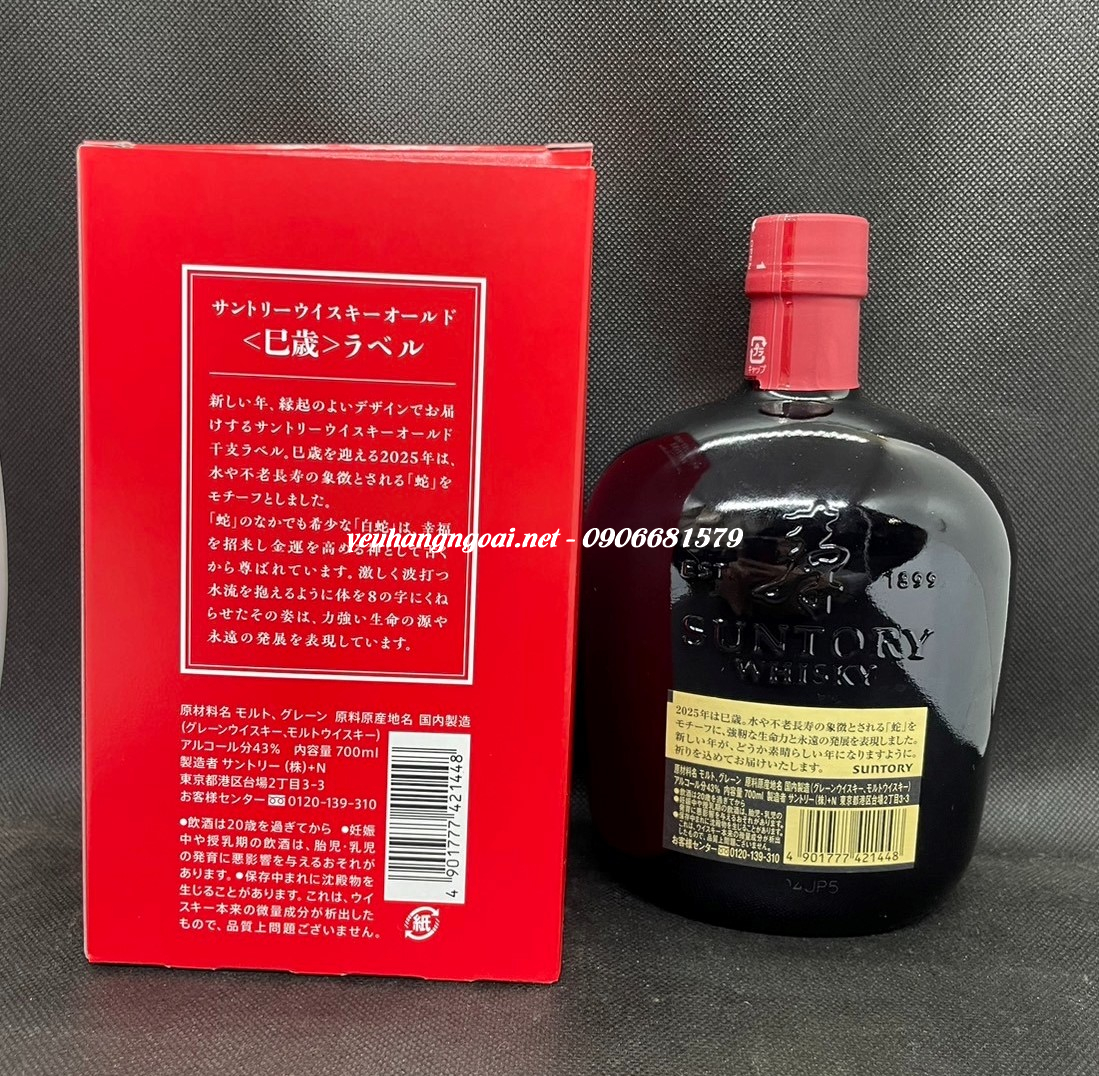 - Trong văn hóa Nhật Bản, Rắn trong nhiều nền văn hóa Á Đông cũng là biểu tượng của sự trường thọ và sự tái sinh. Thế nên, Suntory Old Whisky 2025 có nhãn hình con rắn trắng nên nền hoa văn đỏ được xem như một loại rượu có giá trị và ý nghĩa tâm linh, thường dùng trong các dịp đặc biệt hoặc biếu tặng.